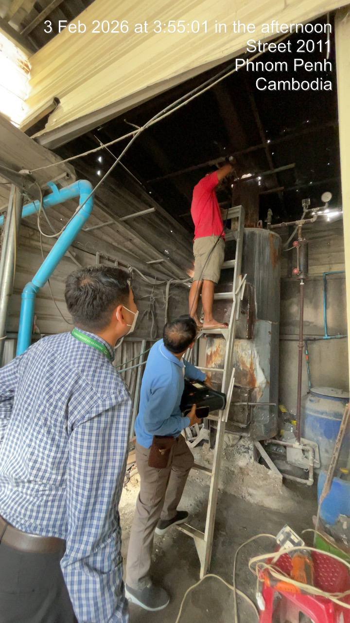 សូមបញ្ជាក់ថា នៅថ្ងៃទី៣ ខែកុម្ភៈ ឆ្នាំ២០២៦ ក្រុមការងារអធិការកិច្ច នៃអគ្គនាយដ្ឋានគាំពារបរិស្ថាន ក្រសួងបរិស្ថាន បានសហការជាមួយមន្ត្រី នៃមន្ទីរបរិស្ថានរាជធានីភ្នំពេញ ចុះត្រួតពិនិត្យករណីមានផ្សែងខ្មៅ ហុយចេញពីបំពង់ផ្សែងឡចំហាយរបស់ក្រុមហ៊ុនខាងលើ។ ក្រុមការងារ បានរកឃើញនៅក្រៅបរិវេណរោងចក្រ បំពង់ផ្សែងឡចំហាយមានហុយផ្សែងខ្មៅ តែពុំមានក្លិនឈ្ងៀមទេ ។