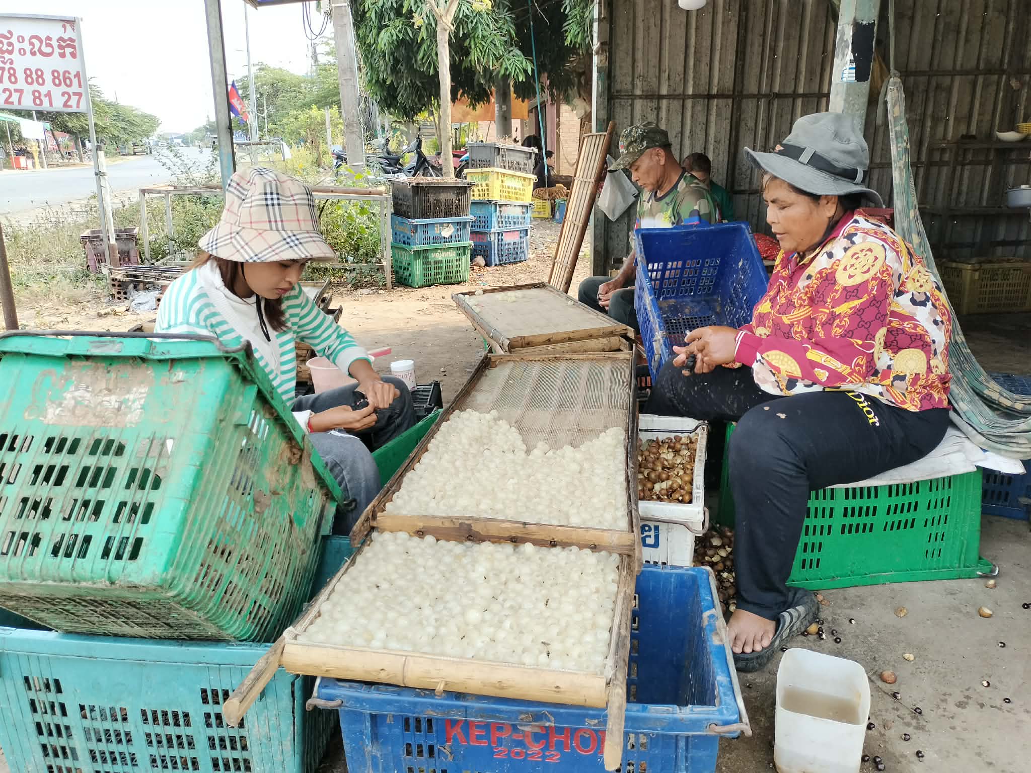 ប្រជាពលរដ្ឋជាង១០០នាក់ នាំគ្នាស៊ីឈ្នួលបកសម្បកផ្លែមៀនប៉ៃលិន ដើម្បីយកថវិកាផ្គត់ផ្គង់ជីវភាព