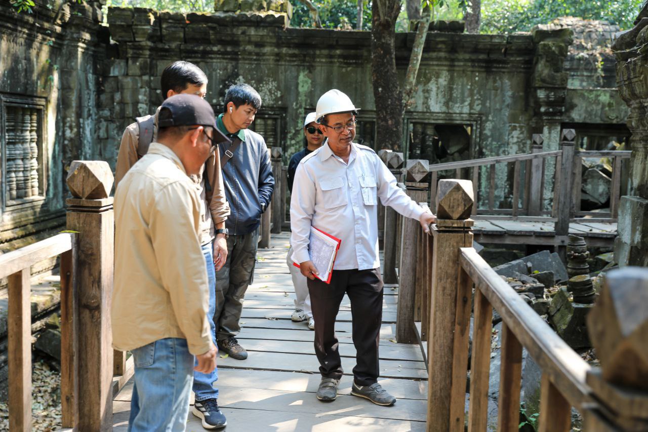 ខេត្តសៀមរាប ៖ នៅរសៀលថ្ងៃទី៤ ខែកុម្ភៈ ឆ្នាំ២០២៦ នេះ នាយកដ្ឋានអភិរក្សប្រាសាទ និងបុរាណវិទ្យានៃអាជ្ញាធរជាតិអប្សរា កំពុងដំណើរការជួសជុលស្ពានឈើនៅប្រាសាទ បេងមាលា ដែលមានការពុកផុយ និងទ្រុឌទ្រោមខ្លាំង។