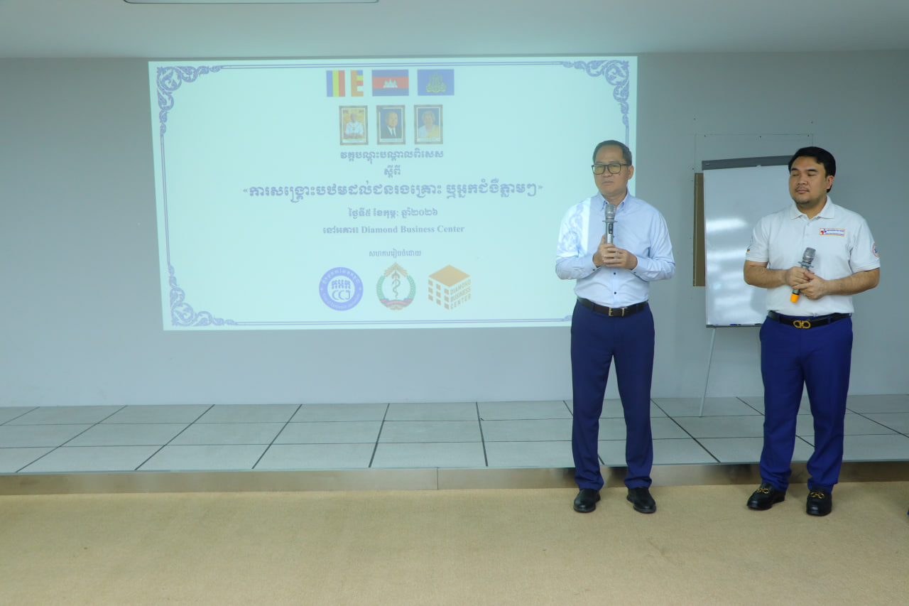សូមជម្រាបផងដែរថា ក្លិបអ្នកកាសែតកម្ពុជា (ក.អ.ក) សហការជាមួយក្រសួងសុខាភិបាល និងផ្ទះយុវជនដើម្បីមិត្តភាពកម្ពុជា-ចិន បានរៀបចំវគ្គបណ្តុះបណ្តាលពិសេសស្ដីពី «ការសង្គ្រោះបឋមដល់ជនរងគ្រោះ ឬអ្នកជំងឺភ្លាមៗ» សម្រាប់អ្នកសារព័ត៌មាន ជាពិសេសអ្នកដែលទៅយកព័ត៌មាននៅតំបន់គ្រោះថ្នាក់ ដើម្បីបង្កើនចំណេះដឹង បន្ថែមលើវិធីជួយសង្គ្រោះបឋមមុនពេលបញ្ចូនជនរងគ្រោះ ឬអ្នកជំងឺទៅមន្ទីរពេទ្យ ៕