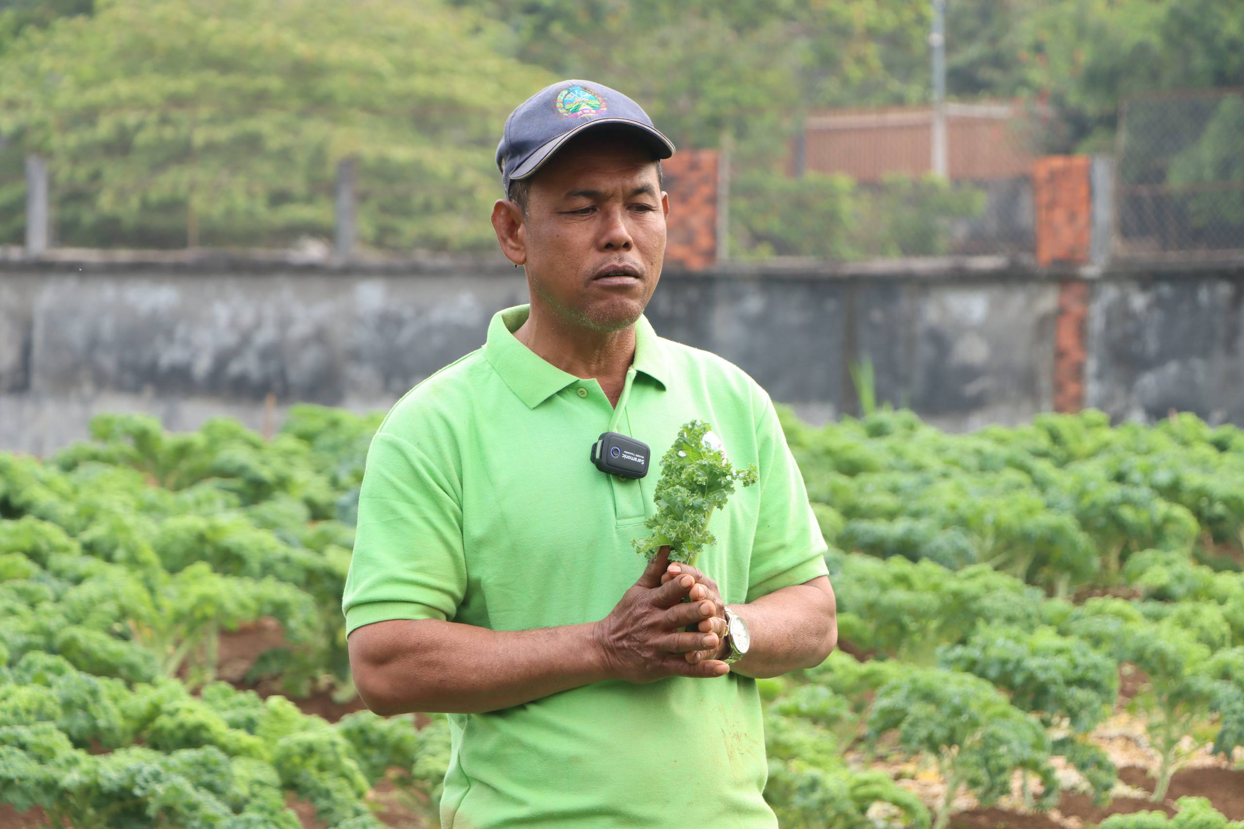 ខេត្តមណ្ឌលគិរី ៖ លោក ភិន ភន កសិករគំរូក្នុងសហគមន៍កសិកម្មសាមគ្គីមនោរម្យ ដែលមានទីលំនៅភូមិដោះក្រមុំ សង្កាត់សុខដុម ក្រុងសែនមនោរម្យ កំពុងទទួលបានលជោគជ័យពីការដាំដុះបន្លែបង្ការ ជាពិសេសការសាកល្បងដាំប្រភេទពូជបន្លែថ្មីគឺ “ឃេល” (Kale) ឬសាលាដបៃតង ដែលជាបន្លែមានអាហារូបត្ថម្ភខ្ពស់ និងកំពុងមានតម្រូវការខ្លាំងលើទីផ្សារបច្ចុប្បន្ន។