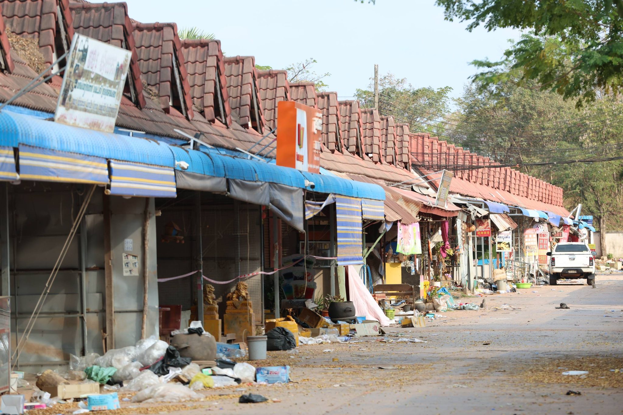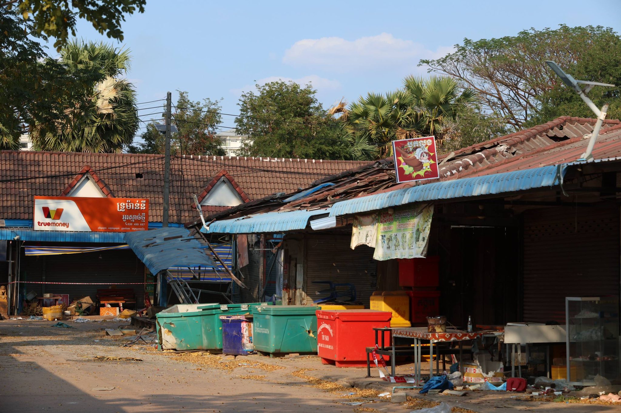 ទិដ្ឋភាពផ្សារអូរស្មាច់ ស្ថិតនៅក្រុងសំរោង ខេត្តឧត្តរមានជ័យ និងតំបន់ស៊ីវិលនៅជុំវិញ ដែលទទួលរងការខូចខាត ពីការបាញ់ផ្លោងរបស់ទាហានឈ្លានពានថៃនាពេលកន្លងមក។