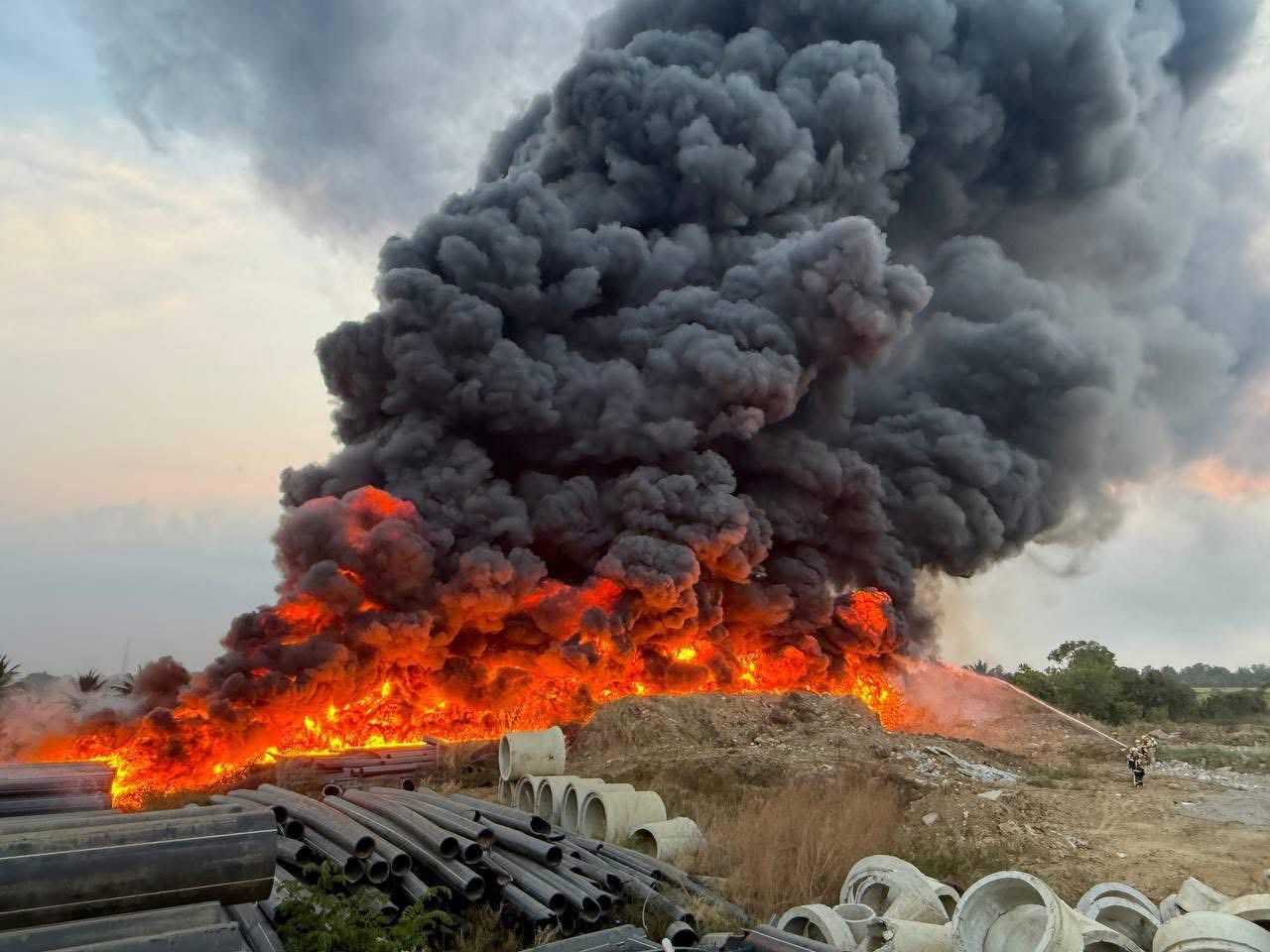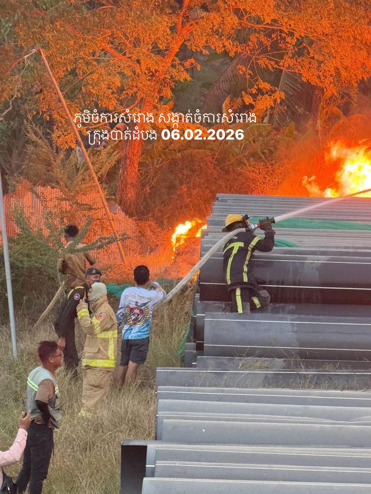 ខេត្តបាត់ដំបង ៖ សេចក្តីរាយការណ៍ជាបឋម បានឲ្យដឹងថា គិតត្រឹមម៉ោង៩យប់ថ្ងៃទី០៦ ខែកុម្ភៈ ឆ្នាំ២០២៦នេះ អណ្តាតភ្លើងមិនទាន់រលត់នៅឡើយទេ ករណីអគ្គិភ័យបានឆាបឆេះកន្លែងស្តុកទុយោជ័រខ្នាតធំរបស់រុមហ៊ុនគីរីដងរែក ។