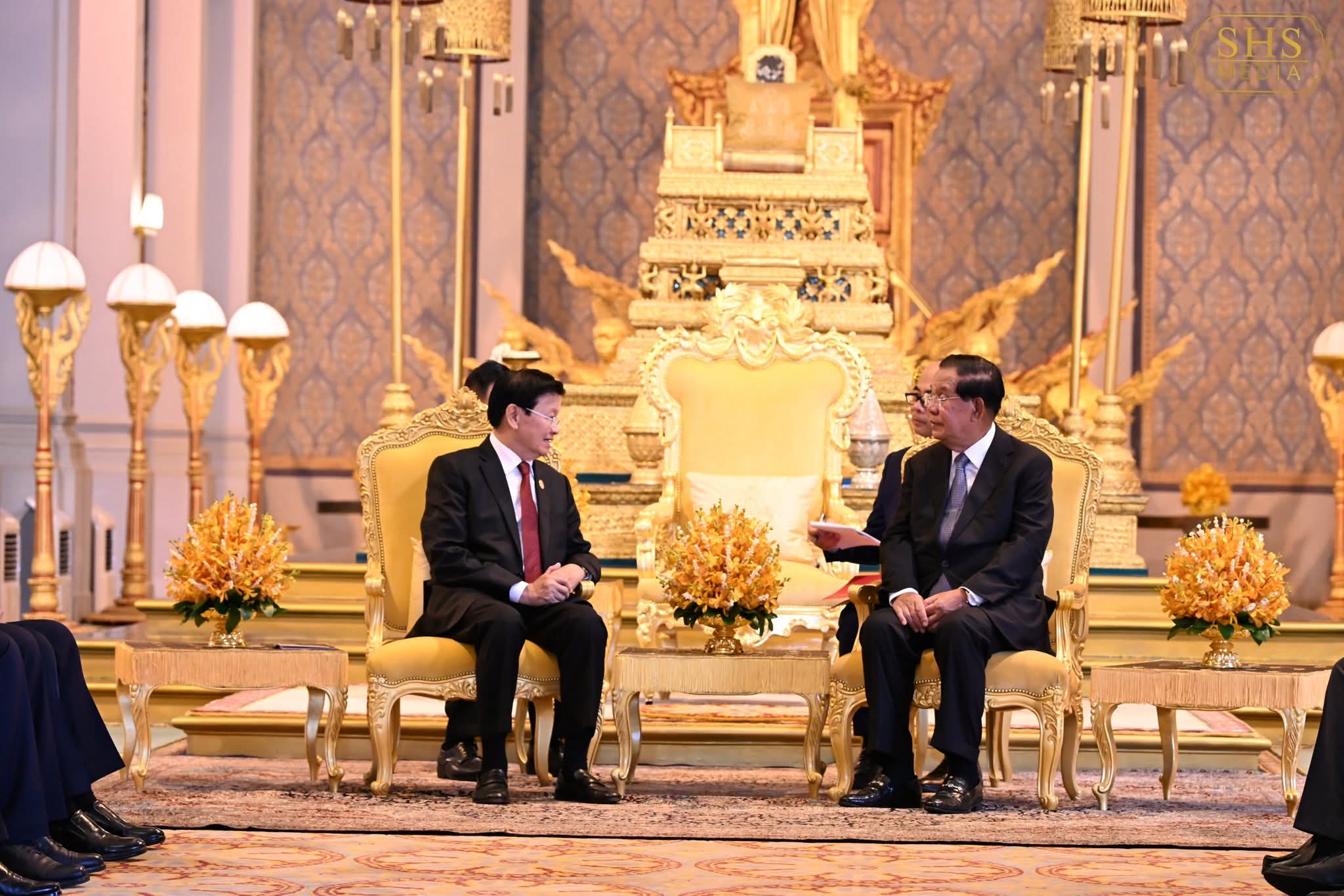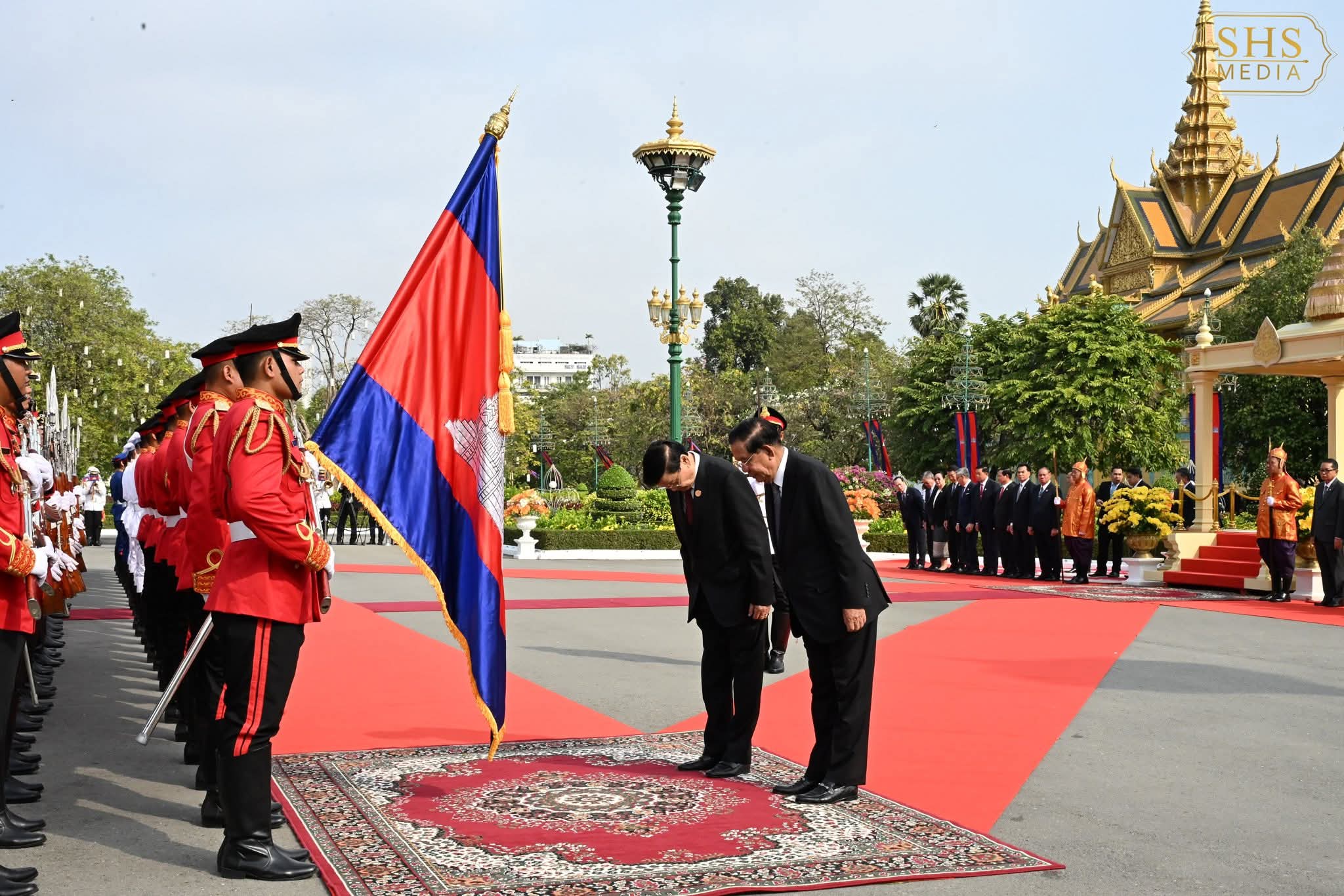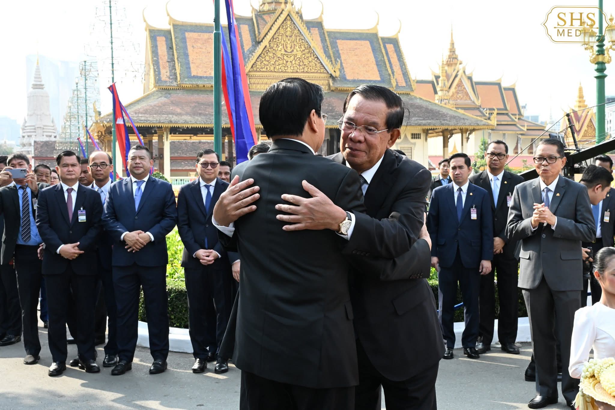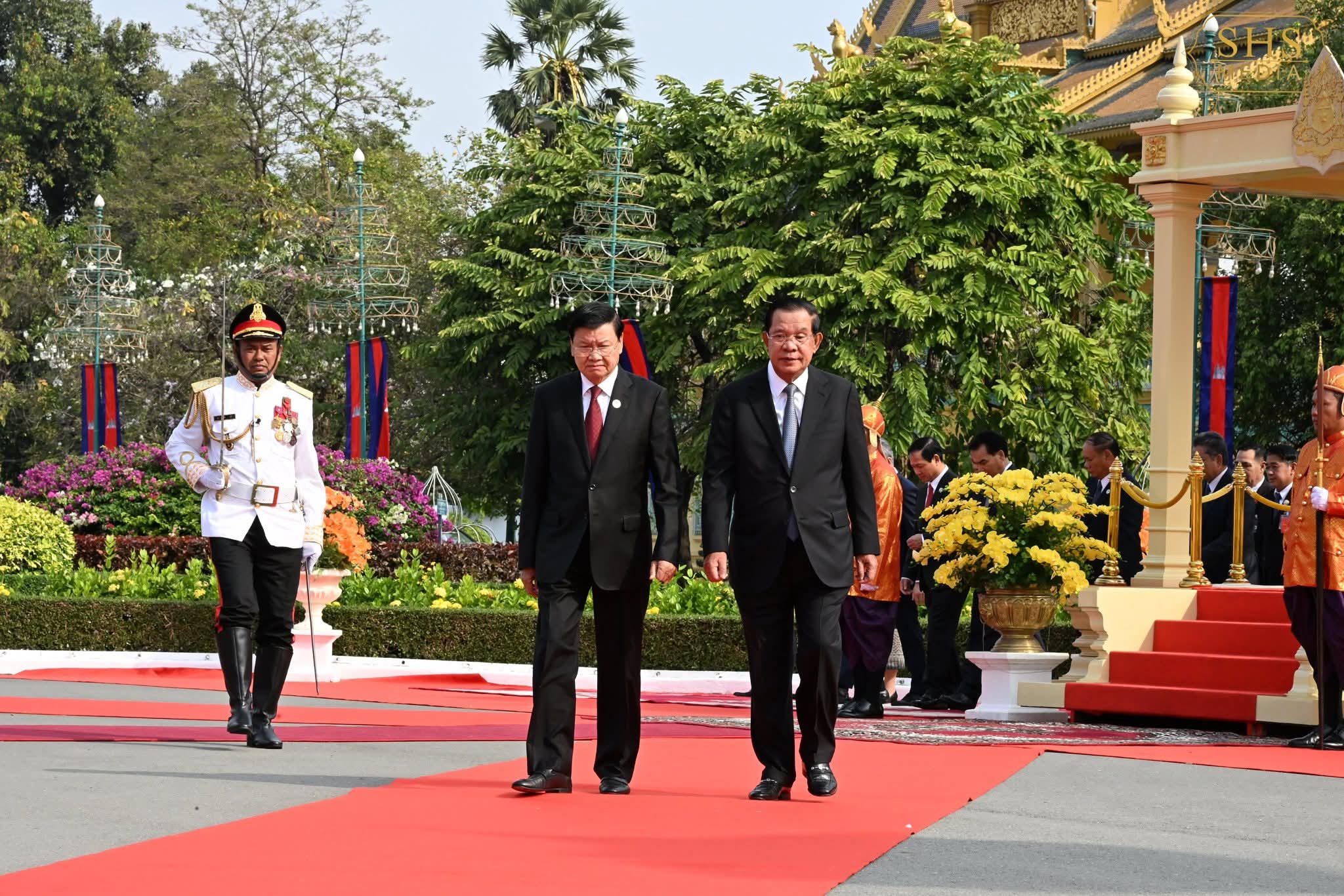 រាជធានីភ្នំពេញ៖ សម្ដេចអគ្គមហាសេនាបតីតេជោ ហ៊ុន សែន ប្រធានព្រឹទ្ធសភានៃព្រះរាជាណាចក្រកម្ពុជា និងជាប្រធានគណបក្សប្រជាជនកម្ពុជា បានអញ្ជើញជាព្រះរាជតំណាងដ៏ខ្ពង់ខ្ពស់បំផុត របស់ព្រះករុណាព្រះបាទសម្ដេចព្រះបរមនាថ នរោត្តម សីហមុនី ព្រះមហាក្សត្រនៃព្រះរាជាណាចក្រកម្ពុជា នាព្រឹកថ្ងៃទី៧ ខែកុម្ភៈ ឆ្នាំ២០២៦ នៅព្រះបរមរាជវាំងទទួលបដិសណ្ឋារកិច្ចស្វាគមន៍ ឯកឧត្តម ថងលុន ស៊ីសុលីត(Thongloun Sisoulith) អគ្គលេខាធិការបក្សប្រជាជនបដិវត្តន៍ឡាវ និងជាប្រធានរដ្ឋឡាវ ក្នុងឱកាសដែលឯកឧត្តម និងគណៈប្រតិភូអញ្ជើញបំពេញទស្សនកិច្ចផ្លូវរដ្ឋនៅកម្ពុជារយៈពេលពីរថ្ងៃ ។