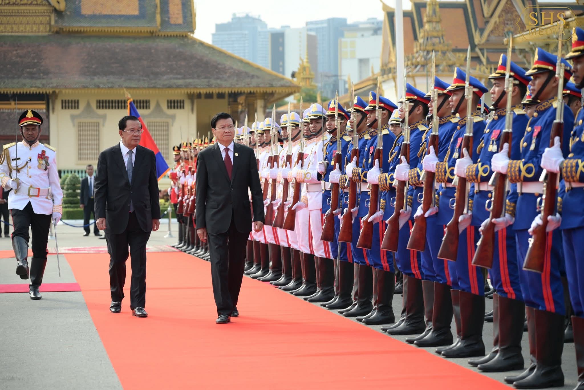 ពិធីបដិសណ្ឋារកិច្ចស្វាគមន៍ ឯកឧត្តម ថងលុន ស៊ីសុលីត(Thongloun Sisoulith) ត្រូវបានធ្វើឡើងនៅព្រះបរមរាជវាំង ដោយមានទទួលដោយកងកិត្តិយសត្រែទ័ព ជាមួយការគោរពភ្លេងជាតិ នៃសាធារណរដ្ឋប្រជាធិបតេយ្យប្រជាមានឡាវ និងភ្លេងជាតិនៃព្រះរាជាណាចក្រកម្ពុជា ទៅតាមលំនាំនៃការទទួលបដិសណ្ឋារកិច្ចផ្លូវរដ្ឋជូនថ្នាក់ដឹកនាំនានា ដែលអញ្ជើញមកបំពេញទស្សនកិច្ចផ្លូវរដ្ឋនៅកម្ពុជា ។