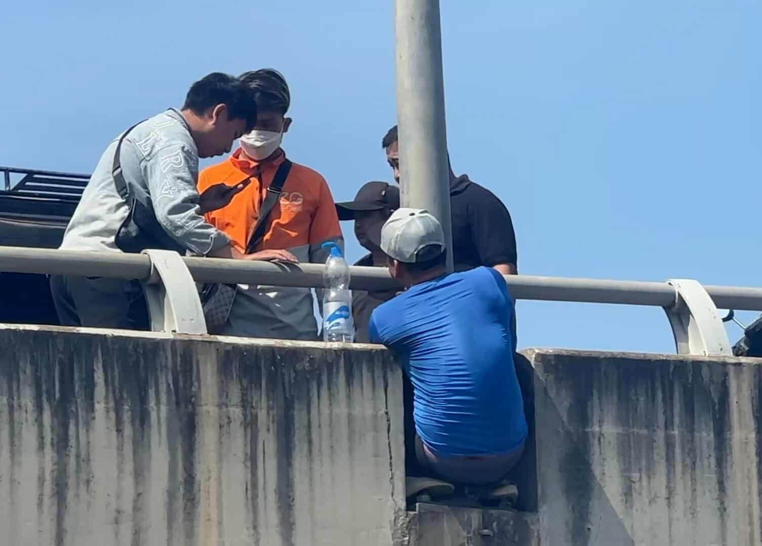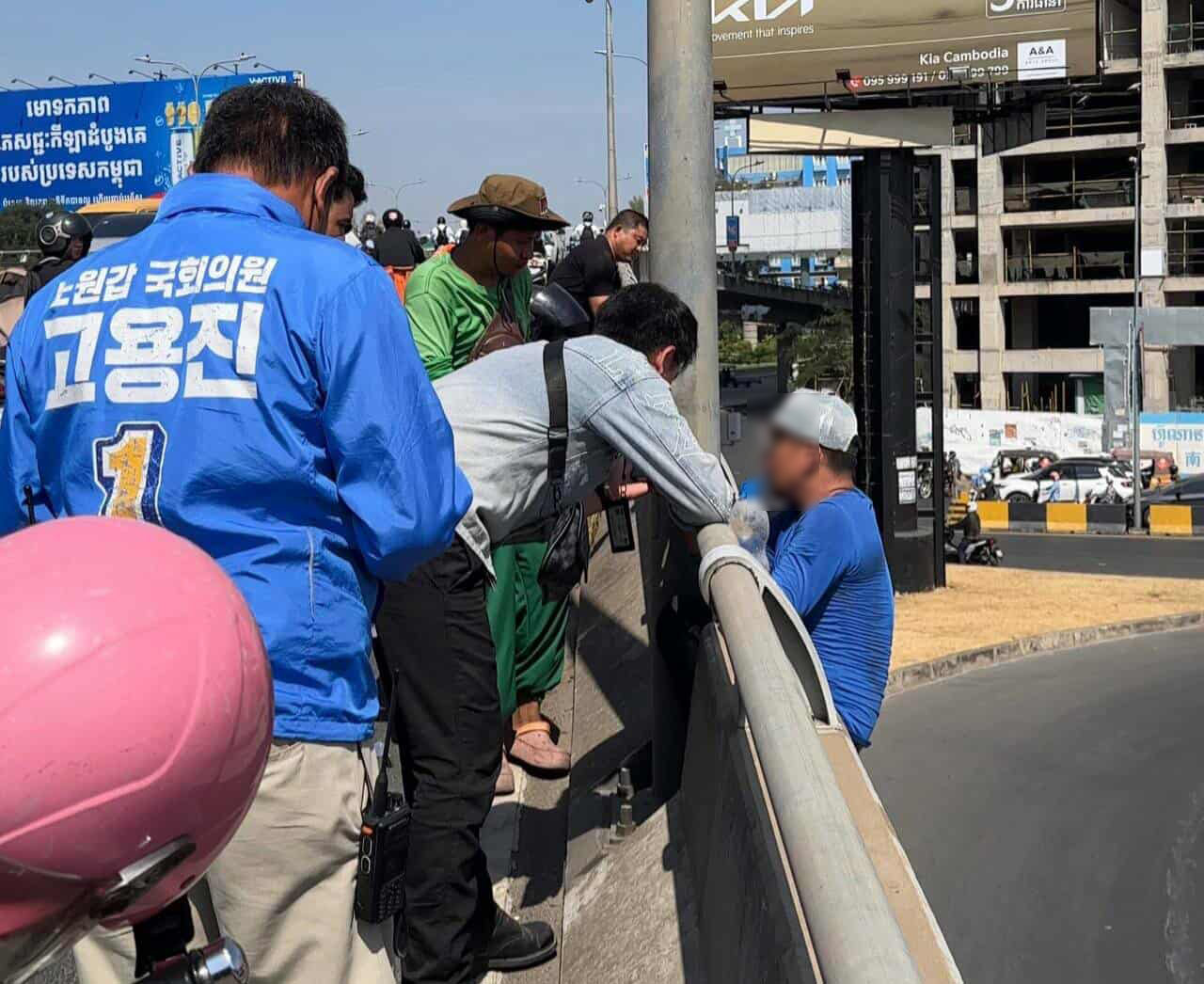 រាជធានីភ្នំពេញ ៖ បុរសជាជនជាតិវៀតណាម្នាក់ បានឡើងតោងបង្កាន់ដៃស្ពានអាកាស ៧មករា ប៉ុនប៉ងលោតសម្លាប់ខ្លួន តែពុំបានសម្រេច ត្រូវសមត្ថកិច្ច ក៏ដូចប្រជាពលរដ្ឋលួងលោមឃាត់ទាន់ ។