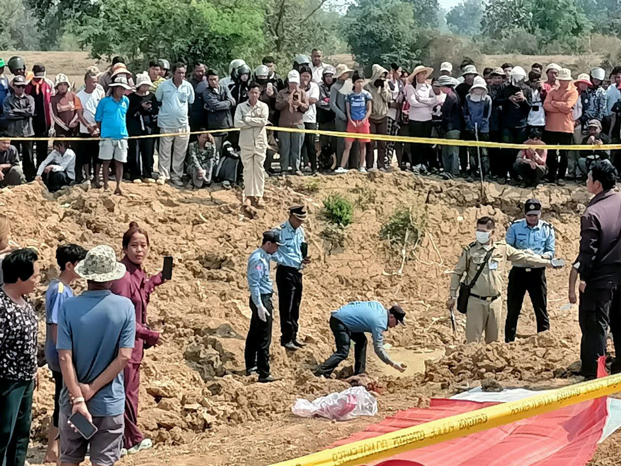 យ៉ាងណាក្ដី ក្រោយពីមន្ត្រីជំនាញសួរនាំបឋមទៅលើក្រុមគ្រួសារជនរងគ្រោះ និងពិនិត្យយ៉ាងល្អិតល្អន់នូវវត្ថុតាងនានាលើទីតាំងកើតហេតុ មន្ត្រីជំនាញគ្រប់ស្ថាប័ន ចូលរួមផង កម្លាំងចម្រុះក៏បានគាស់យកសាកសពចេញពីដី ដើម្បីធ្វើកោសល្យវិច័យ ដែលមានវត្តមានតំណាងអយ្យការអមសាលាដំបូងខេត្ត ចូលរួមត្រូតពិនិត្យយ៉ាងហ្មត់ចត់ផង ។