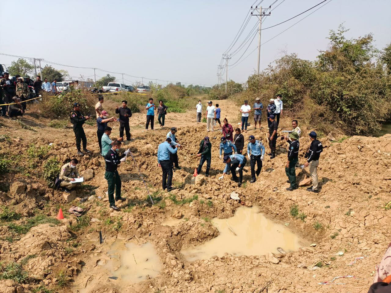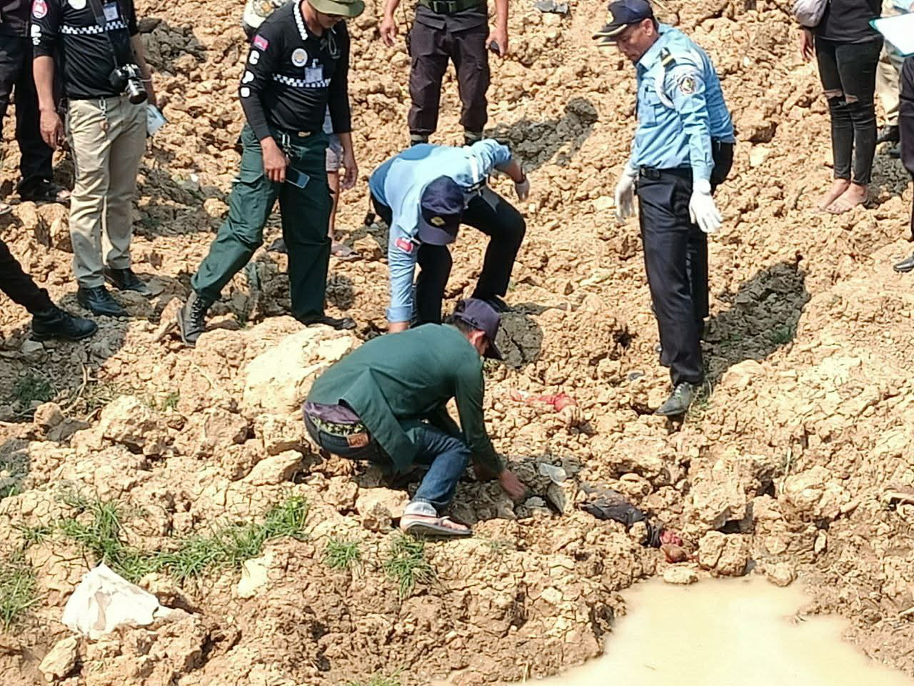 ស្ថិតក្នុងស្ថានភាពដ៏គួរឲ្យភ្ញាក់ផ្អើលបែបនេះ គេឃើញមានមន្ត្រីមូលដ្ឋាន មន្ត្រីនគរបាលចរាចរណ៍ មន្ត្រីនគរបាលបច្ចេកទេស និងមន្ត្រីនគរបាលព្រហ្មទពណ្ឌ បានចុះទៅកាន់ចំណុចកើតហេតុព្រមៗគ្នា ដើម្បីពិនិត្យកន្លែងកើតហេតុ វត្ថុតាង និងពិនិត្យសាកសពកប់ក្នុងដី ។ សាកសពនោះ ត្រូវបានគេស្គាល់ភ្លាមៗ តាមរយៈឯកសារទិញម៉ូតូបង់រំលស់ ដែលរក្សាទុកនៅក្នុងកាបូបមួយ ហើយត្រូវបានសមត្ថកិច្ចទំនាក់ទំនងទៅមន្ត្រីមូលដ្ឋាន ស្វែងរកឃើញសាច់ញាតិជនរងគ្រោះនោះភ្លាមៗដែរ ។