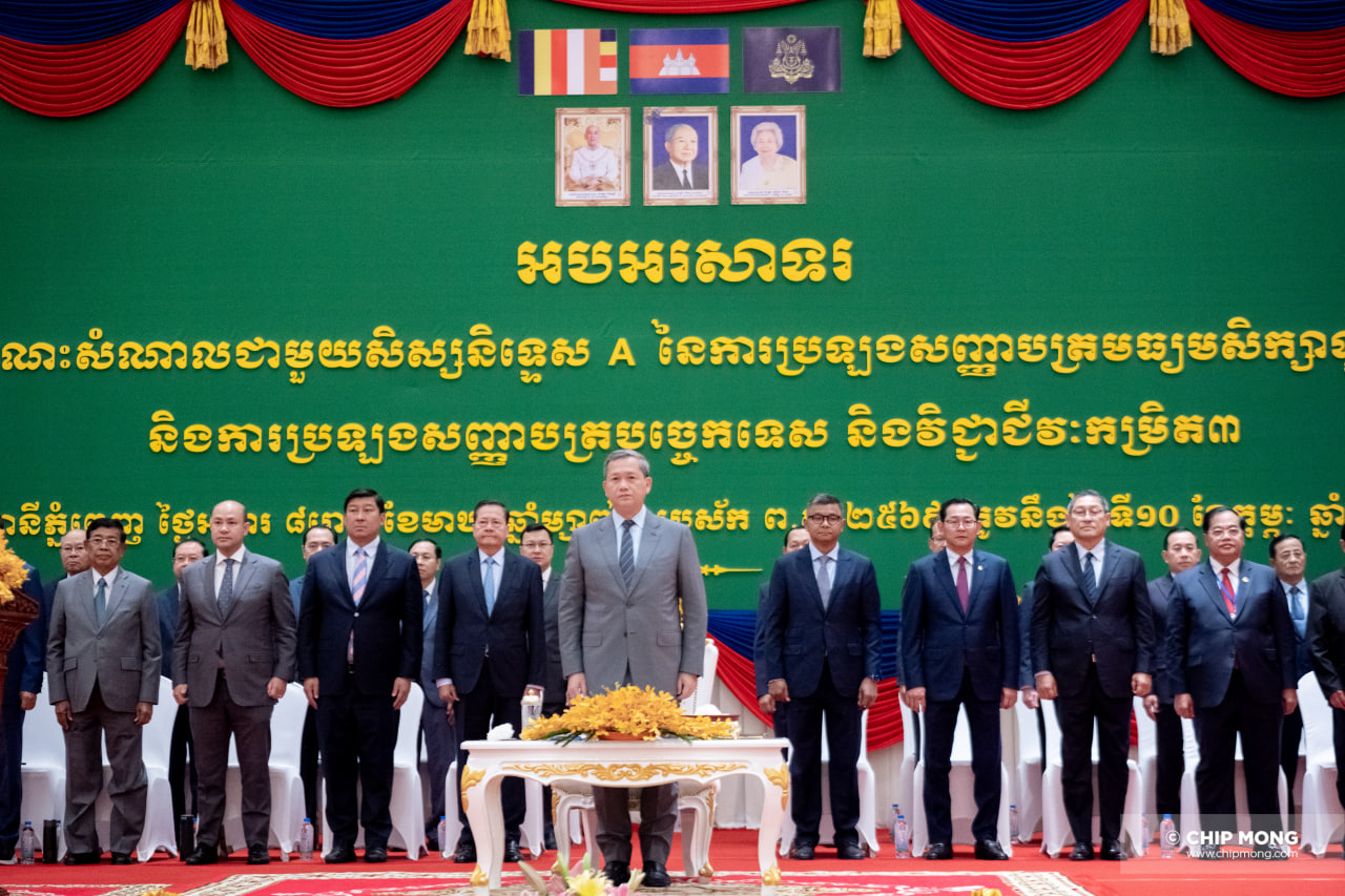 រាជធានីភ្នំពេញ ៖ ពិធីសំណះសំណាលជាមួយសិស្សនិទ្ទេស A សម្រាប់ការប្រលងសញ្ញាបត្រមធ្យមសិក្សាទុតិយភូមិ និងការប្រលងសញ្ញាបត្របច្ចេកទេស និងវិជ្ជាជីវកម្រិត ៣ បានធ្វើឡើងនាព្រឹកថ្ងៃទី ១០ ខែកុម្ភៈ ឆ្នាំ ២០២៦ ក្រោមអធិបតីភាពដ៏ខ្ពង់ខ្ពស់របស់សម្តេចមហាបវរធិបតី ហ៊ុន ម៉ាណែត នាយករដ្ឋមន្ត្រីនៃព្រះរាជាណាចក្រកម្ពុជា ព្រមទាំងថ្នាក់ដឹកនាំពីគ្រប់ស្ថាប័នដែលពាក់ព័ន្ធ ក៏ដូចជាក្រុមហ៊ុន ជីប ម៉ុង ផងដែរ ។
