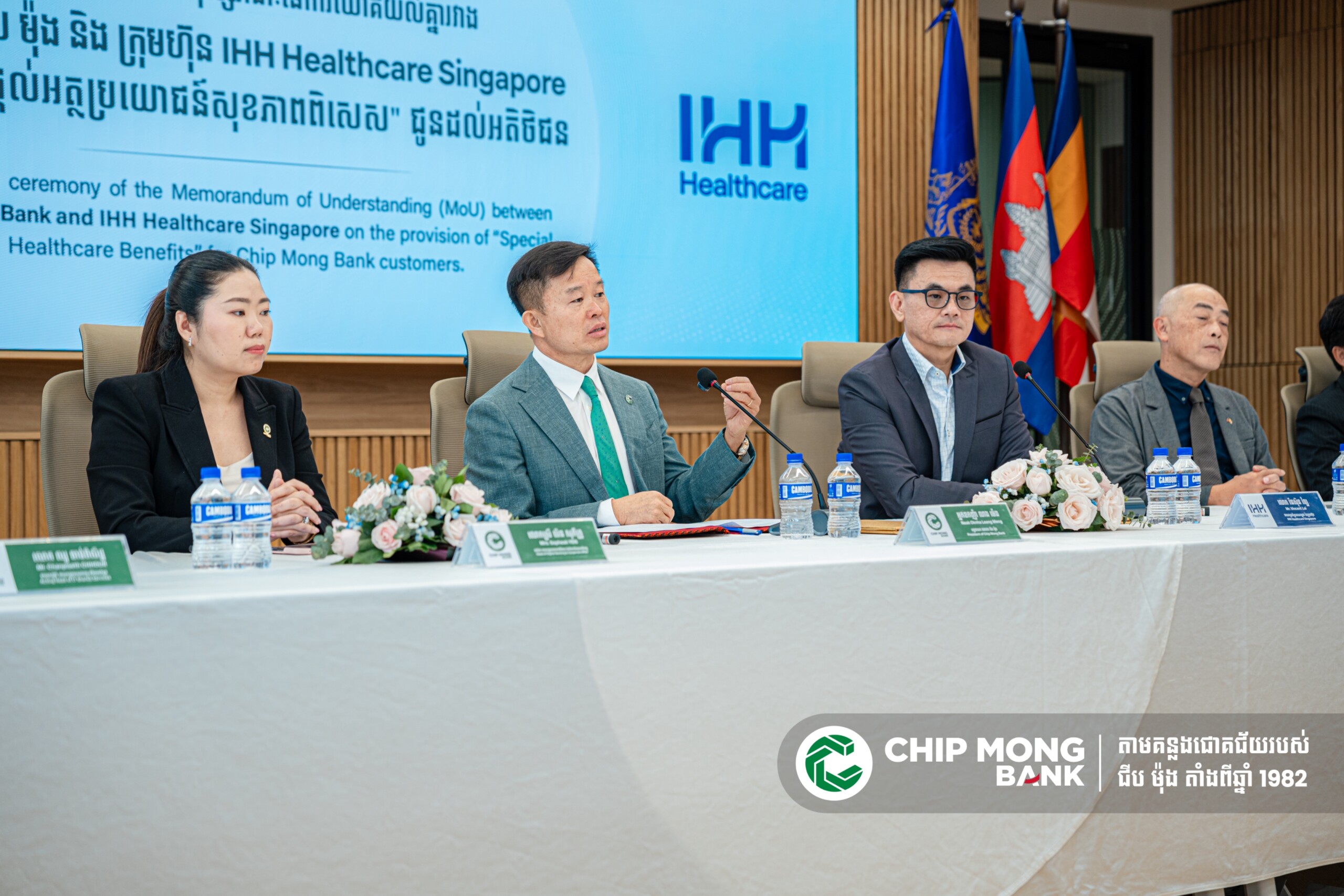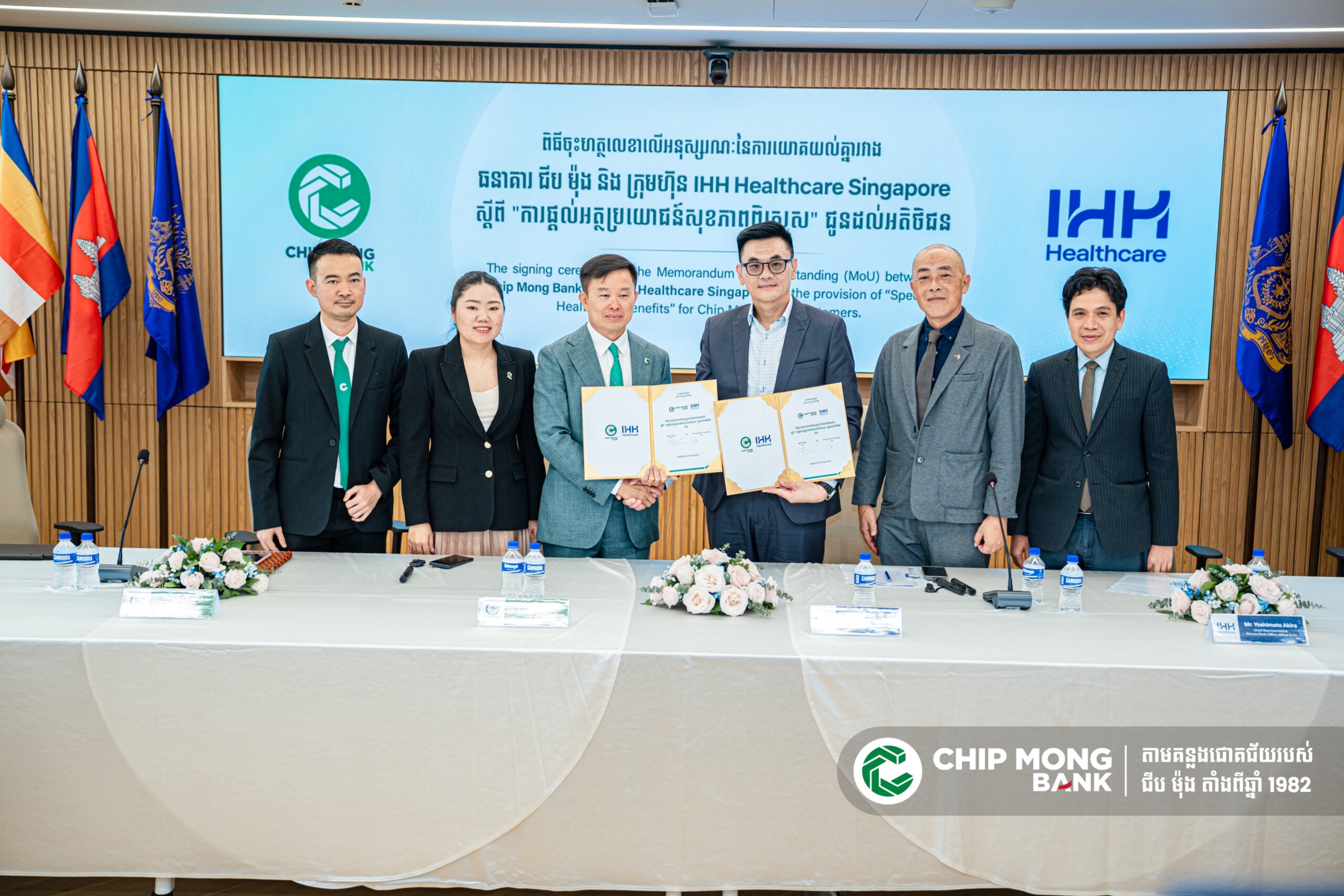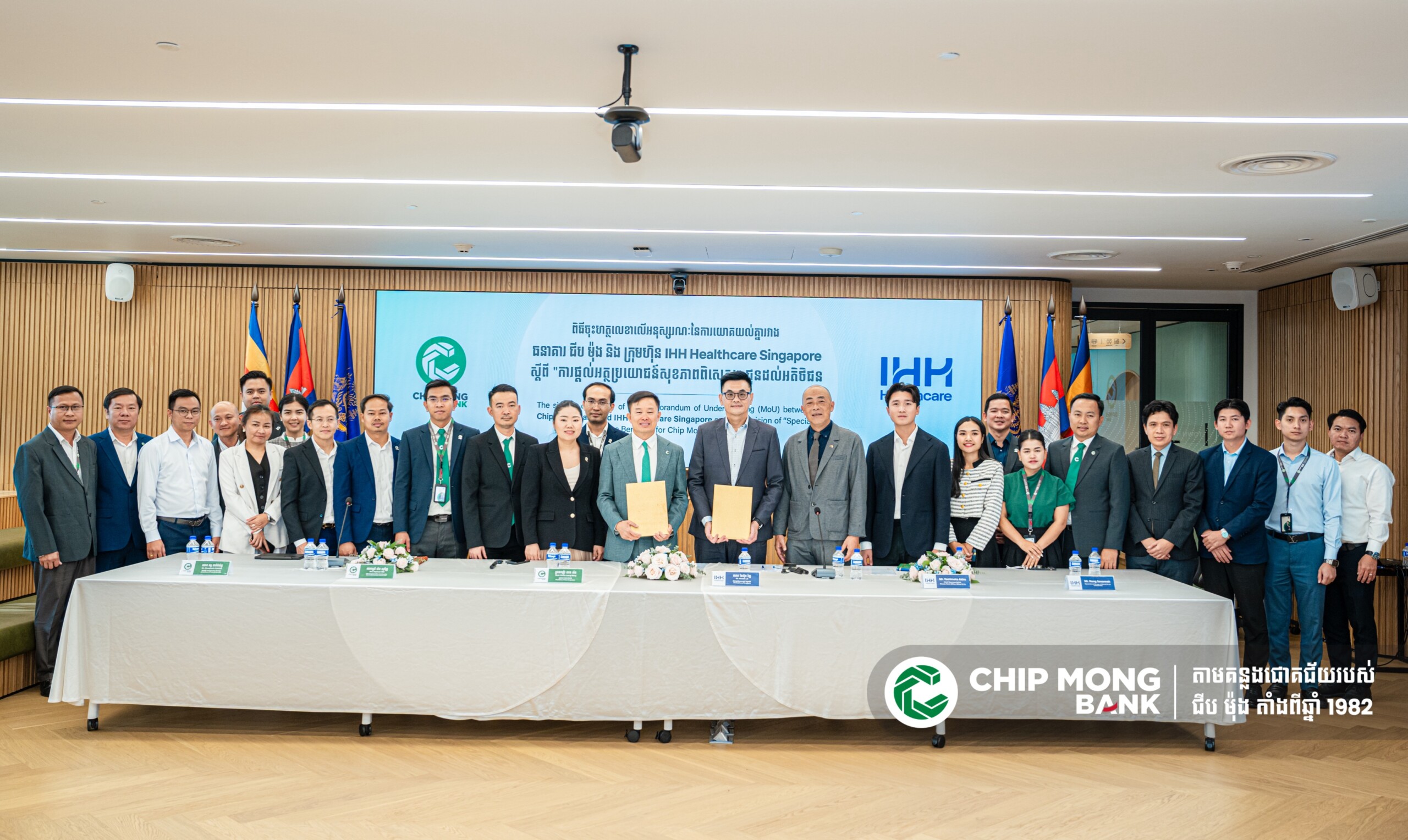 រាជធានីភ្នំពេញ, ថ្ងៃទី ១០ ខែកុម្ភៈ ឆ្នាំ ២០២៦ ៖ ធនាគារ ជីប ម៉ុង ដែលជាធនាគារខ្មែរបង្កើតឡើងដោយសហគ្រិនខ្មែរ ១០០%បានប្រកាសជាផ្លូវការនូវកិច្ចសហប្រតិបត្តិការជាមួយក្រុមហ៊ុនអន្តរជាតិ ក្រុមហ៊ុន IHH Healthcare Singapore ដើម្បីដាក់ចេញនូវអត្ថប្រយោជន៍ពិសេសសម្រាប់សេវាផ្នែកសុខភាពនៅមន្ទីរពេទ្យរបស់ក្រុមហ៊ុន IHH Healthcare Singapore ជូនអតិថិជនរបស់ធនាគារ ជីប ម៉ុង ។