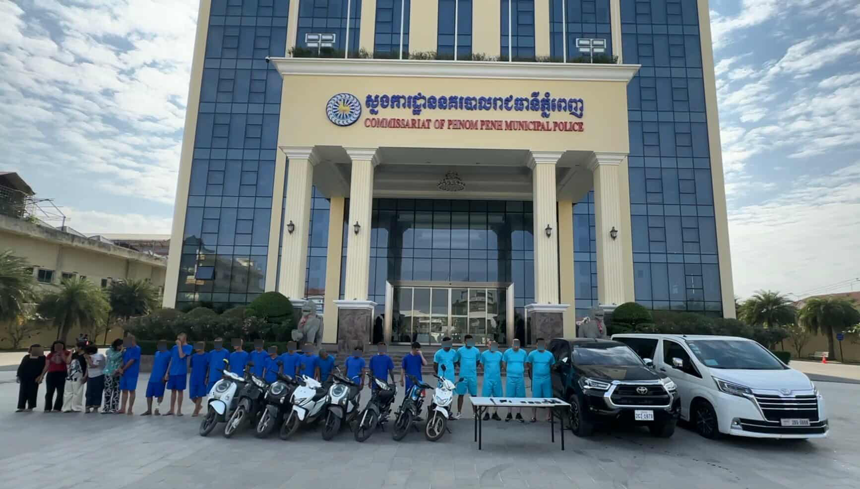 រាជធានីភ្នំពេញ ៖ ជនសង្ស័យជនជាតិចិននិងខ្មែរចំនួន ២៤ពាក់ព័ន្ធប្រព្រឹត្តបទល្មើស៥ ករណីផ្សេងគ្នាត្រូវបានកម្លាំងនគរបាលព្រហ្មទណ្ឌកំរិតស្រាលនិងកំរិតធ្ងន់នៃស្នងការនគរបាលរាជធានីភ្នំពេញបង្ហាញមុខជាសាធារណៈកាលពីវេលាម៉ោង២រសៀលថ្ងៃទី១២ខែកុម្ភៈឆ្នាំ ២០២៦។