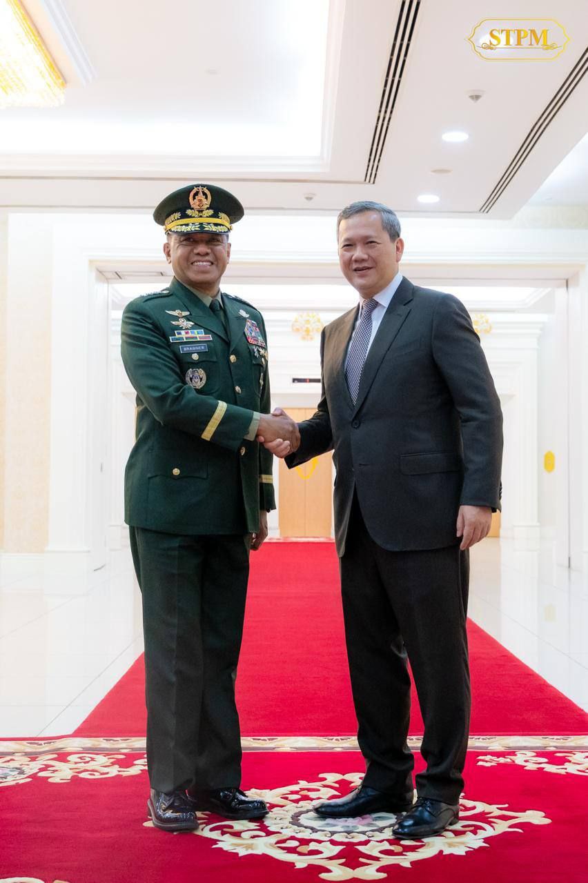 រាជធានីភ្នំពេញ ៖ នាព្រឹកថ្ងៃទី១២ ខែកុម្ភៈ ឆ្នាំ២០២៦ សម្ដេចមហាបវរធិបតី ហ៊ុន ម៉ាណែត នាយករដ្ឋមន្ត្រី នៃព្រះរាជាណាចក្រកម្ពុជា បានអនុញ្ញាតឱ្យឯកឧត្តម នាយឧត្តមសេនីយ៍ Romeo S. Brawner Jr. អគ្គមេបញ្ជាការកងទ័ពហ្វីលីពីន ចូលជួបសម្ដែងការគួរសម និងពិភាក្សាការងារ នៅវិមានសន្ដិភាព ។