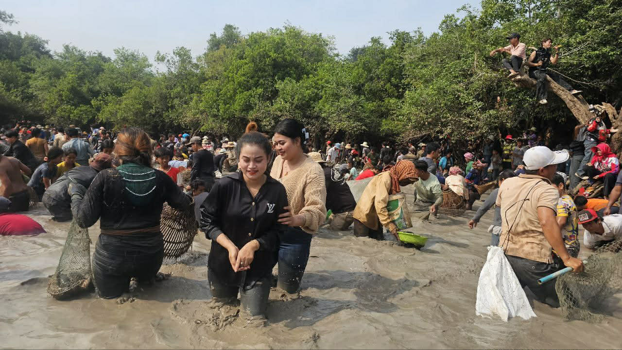 អ្នកខ្លះចាប់បានត្រីកំផ្លៀញ ត្រីឆ្លាំង ត្រីរ៉ស់ ត្រីឡាត មានតូចមានធំ ដោយមានឧបករណ៍ស្ពាយសម្រាប់ដាក់ត្រីពេលពិនិត្យមើលថា សមល្មមហើយមានអ្នកខ្លះបានឡើងមកលើគោកដោយបង្កាត់ភ្លើងអាំងត្រីនៅក្រោមម្លប់ឈើ ជួបជុំមិត្តភក្តិ ក្រុមគ្រួសារ ទទួលទានអាហារសប្បាយលេង ដែលមួយឆ្នាំមានតែម្ដង ។