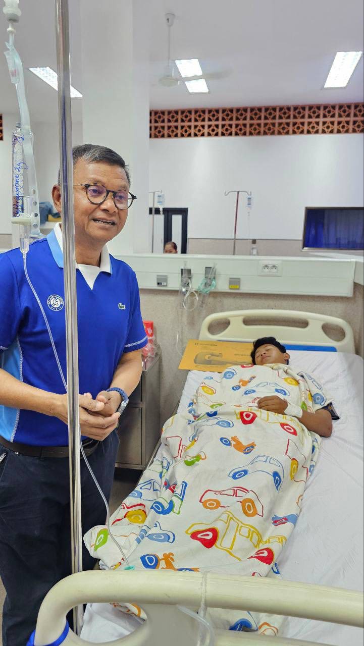 រាជធានីភ្នំពេញ ៖ នៅព្រឹកថ្ងៃទី១៤ ខែកុម្ភៈ ឆ្នាំ២០២៦ ឯកឧត្ដមបណ្ឌិតសភាចារ្យ ហង់ជួន ណារ៉ុន ឧបនាយករដ្ឋមន្ត្រី រដ្ឋមន្ត្រីក្រសួងអប់រំ យុវជន និងកីឡា បានអញ្ជើញចុះសួរសុខទុក្ខប្អូនប្រុស អ៊ាង ពៅ ជាសិស្សថ្នាក់ទី៧ នៅអនុវិទ្យាល័យសម្ដេចឪ ខេត្តព្រះសីហនុ ដែលកំពុងសម្រាកព្យាបាល នៅមន្ទីរពេទ្យគន្ធបុប្ផា ។