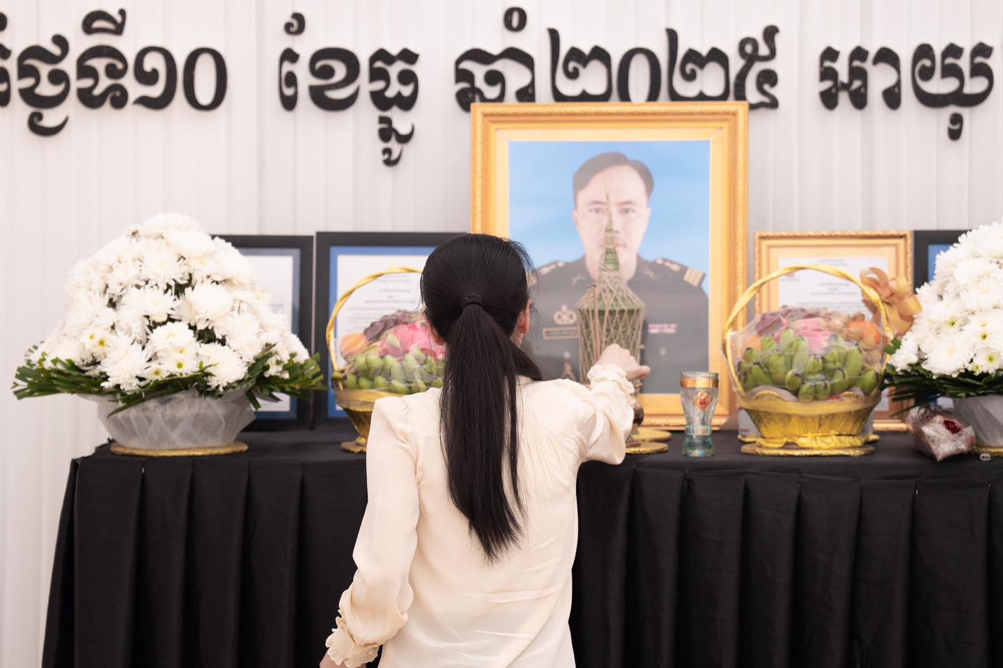 ស្ថិតក្នុងបរិយាកាសដ៏សោកសៅនេះដែរ លោកជំទាវបណ្ឌិត បានពាំនាំប្រសាសន៍ចូលរួមរំលែកមរណទុក្ខដ៏ក្រៀមក្រំបំផុត រួមជាមួយប្រសាសន៍សាកសួរសុខទុក្ខពី សម្តេចអគ្គមហាសេនាបតីតេជោ ហ៊ុន សែន និងសម្តេចកិត្តិព្រឹទ្ធបណ្ឌិត ព្រមទាំង សម្តេចធិបតីនាយករដ្ឋមន្ត្រី ជូនដល់ក្រុមគ្រួសារនៃសព ។