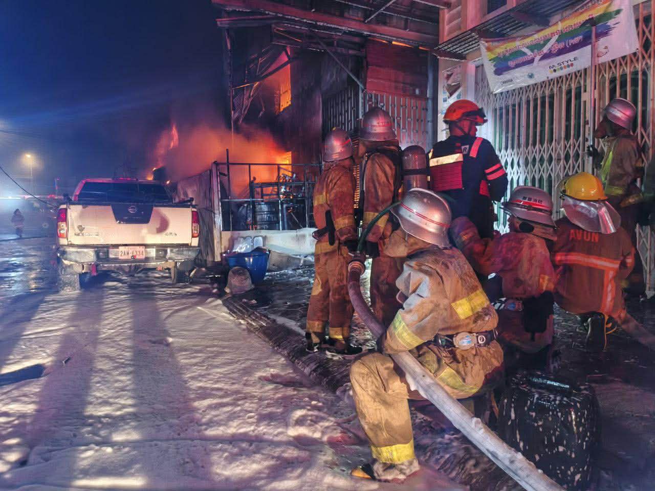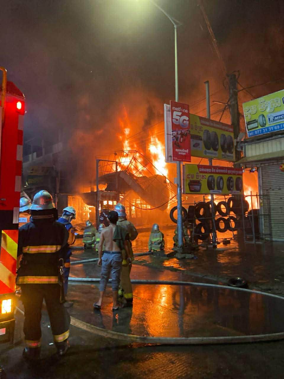 អគ្គិឆាបឆេះផ្ទះលក់សំបកកង់រថយន្តយ៉ាងសន្ធោសន្ធៅ រាលដល់ផ្ទះច្រើនខ្នង និងឆេះដោយទាំងរថយន្ត