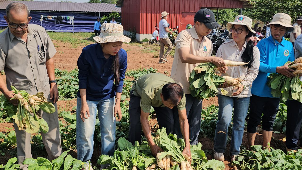 ខេត្តកំពត ៖ លោកចាន់ ចេស្ដារដ្ឋលេខាធិការក្រសួងកសិកម្មរួមទាំងអាជ្ញាធរស្រុកកំពង់ត្រាចខេត្តកំពតកាលពីព្រឹកថ្ងៃទី13ខែកុម្ភៈ ឆ្នាំ2026 បានចុះមកដល់ភូមិអង្គរជ័យទី1ដែលមានដាំបន្លែដាំដុះមានត្រកួន និងស្ពៃមើមក្នុងឃុំដំណាក់កន្ទួតខាងត្បូងស្រុកកំពង់ត្រាចដើម្បីធ្វើការចែកជូនដល់គ្រួសារកងទ័ពនិងគ្រួសារភៀសសឹកចំនួនជិត100គ្រួសារមកពីឃុំចំនួន3ក្នុងស្រុកកំពង់ត្រាច។