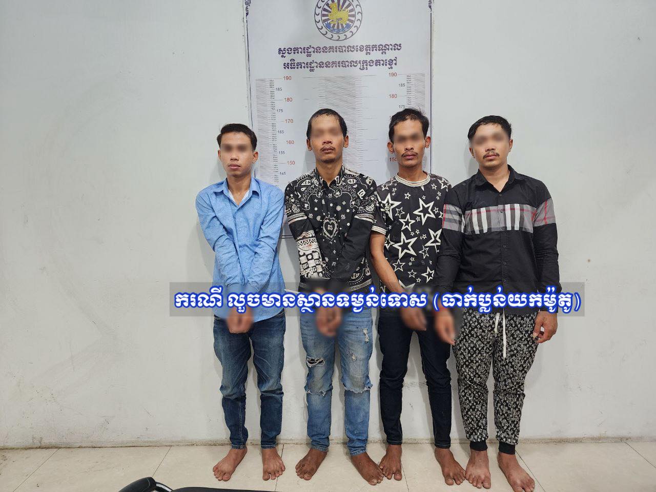 ខេត្តកណ្តាល ៖ អធិការដ្ឋាននគរបាលក្រុងតាខ្មៅ បានបង្ហាញមុខក្រុមក្មេងទំនើង និងមុខសញ្ញាធាក់ប្លន់យកម៉ូតូ ចំនួន១៦នាក់ ដែលបានធ្វើសកម្មភាពប្រព្រឹត្តបទល្មើសចំនួន០៤ករណីផ្សេងគ្នា ក្នុងទឹកដីក្រុងតាខ្មៅ ។