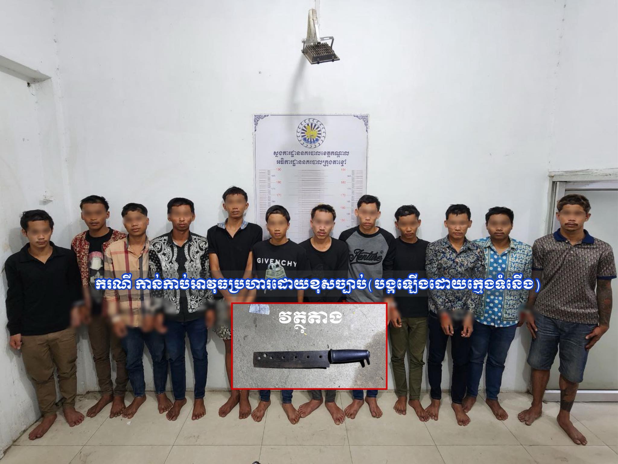 ករណីទី៣ ៖ ឃាត់ខ្លួនជនសង្ស័យចំនួន១១នាក់ ពាក់ព័ន្ធករណីកាន់កាប់អាវុធប្រហារដោយគ្មានការអនុញ្ញាត្តិ ប្រព្រឹត្តល្មើសនៅចំណុចលើមហាវិថីស៊ីជិនពីង ផ្លូវក្រវ៉ាត់ក្រុងទី៣ ស្ថិតក្នុងភូមិចុងកោះ សង្កាត់កោះអន្លង់ចិន ក្រុងតាខ្មៅ កាលពីថ្ងៃទី៩ ខែកុម្ភៈ ឆ្នាំ២០២៦ វេលាម៉ោង០៤:២០នាទី ។