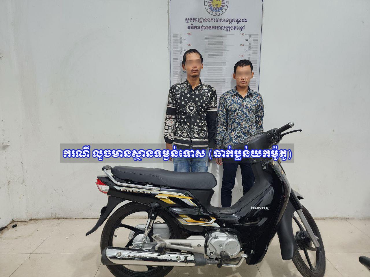 ករណីទី២ ៖ ប្រព្រឹត្តល្មើសនៅចំណុចលើផ្លូវ២១ ភូមិព្រែកថី សង្កាត់រកាខ្ពស់ ក្រុងតាខ្មៅ ខេត្តកណ្តាល កាលពីថ្ងៃទី១២ ខែកុម្ភៈ ឆ្នាំ២០២៦ វេលាម៉ោង០៥:០០នាទី យកម៉ូតូជូនជងរងគ្រោះបានវិញ ។