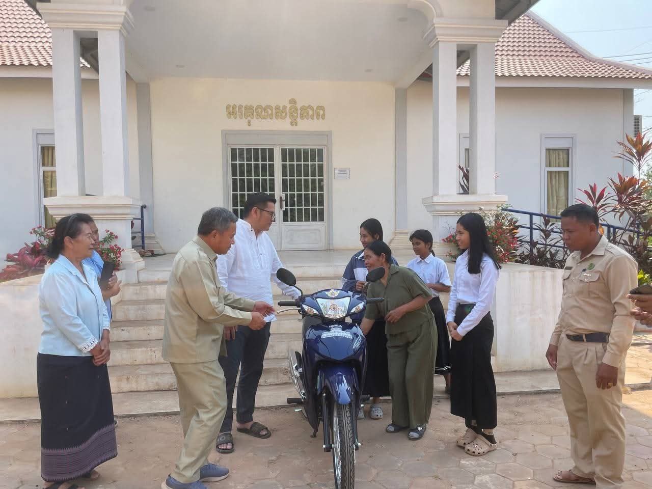ខេត្តសៀមរាប ៖ ឆ្លើយតបតាមសំណើរបស់គ្រួសារយោធិន ឈ្មោះ រ៉ា ទី ស្នើសុំម៉ូតូមួយគ្រឿង ដើម្បីសម្រួលដល់មធ្យោបាយធ្វើ ដំណើរដល់ក្មួយស្រី ឈ្មោះ ប៉ុក ស្រីពៅ សម្រាប់ទៅសាលារៀន នាថ្ងៃទី១៦ ខែកុម្ភៈ ឆ្នាំ២០២៦ នៅសាលាស្រុកសូទ្រនិគម លោក សំកុល សុចិត្រា អភិបាលរងខេត្ត តំណាងឯកឧត្តម ប្រាក់ សោភ័ណ អភិបាល នៃគណៈអភិបាលខេត្តបានប្រគល់ម៉ូតូមួយគ្រឿងដែលជាអំណោយដ៏ថ្លៃថ្លារបស់សម្តេចមហាបវរធិបតី ហ៊ុន ម៉ាណែត នាយករដ្ឋមន្ត្រី និងលោកជំទាវបណ្ឌិត ពេជ ចន្ទមុន្នី ហ៊ុនម៉ាណែត ត្រូវបានប្រគល់ជូនក្មួយស្រី ប៉ុក ស្រីពៅ ដែលជាគ្រួសាររបស់យោធិនឈ្មោះ រ៉ា ទី ដែលបានពលីនៅសមរភូមិនៅខ្សែបន្ទាត់ព្រំដែន។