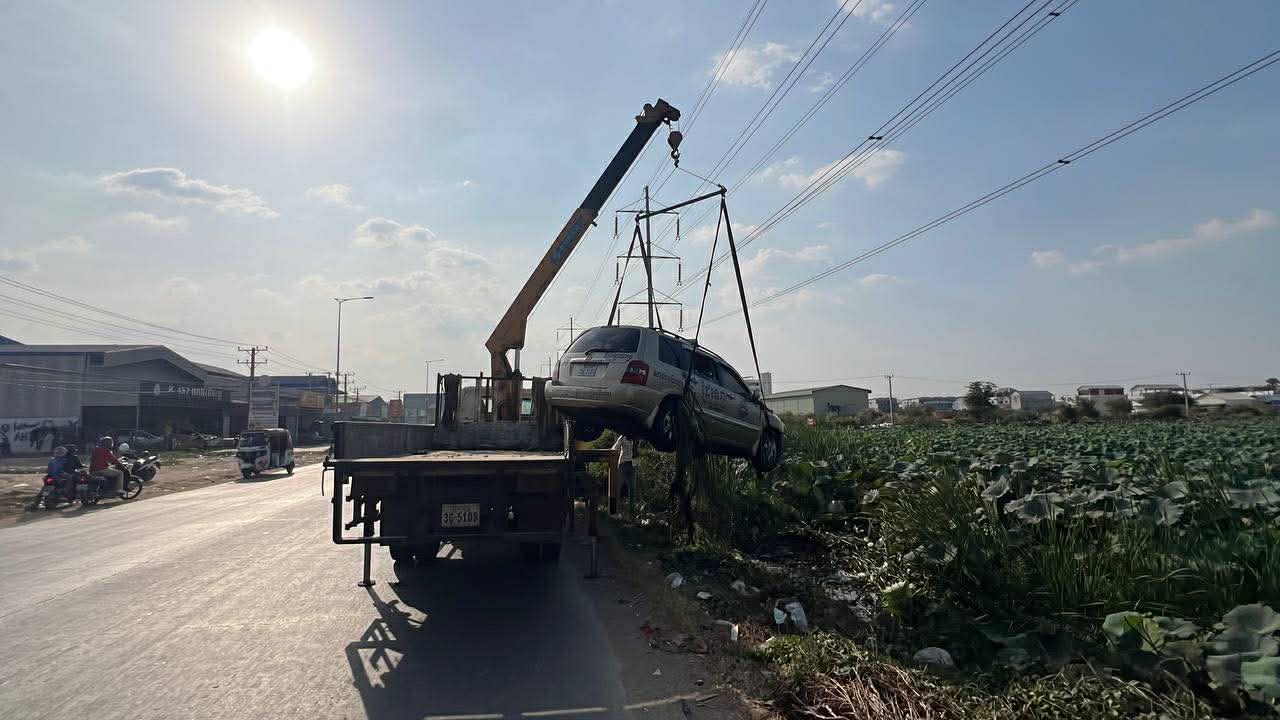 រាជធានីភ្នំពេញ ៖ រថយន្ត ១គ្រឿង របស់សាលារៀនបើកបរ «ដៃទេព» សាខាផ្សារទួលពង្រ ខណៈបង្រៀនសិស្សបើកបរ ក៏ស្រាប់តែរេចង្កូតធ្លាក់ផ្លូវចូលទៅក្នុងទឹកបឹងឈូកមួយកន្លែងទាំងកំរោល ប៉ុន្តែសំណាងល្អ ដែលរថយន្តធ្លាក់ចូលទៅតាមសម្រួលហើយអត់ក្រឡាប់ ទើបគ្រាន់តែរងការខូចខាត ហើយមិនបានបណ្ដាលឲ្យគ្រូ និងសិស្សរងរបួសនោះឡើយ ។