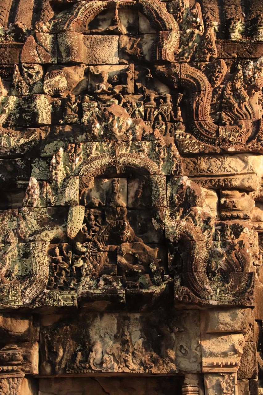 តួកណ្តាលមានលក្ខណៈពិសេស ដោយមានយ៉៤ ដែលខាងកើតបើកជាច្រកចូលសំខាន់ រីឯយ៉៣ទៀតបិទដោយទ្វារបញ្ឆោត ។ នៅលើទ្វារបញ្ឆោតនៃយ៉ទាំង៣នេះ មានចម្លាក់ល្អវិចិត្រ និងអមដោយចម្លាក់ទេវតាជាច្រើនដូចនឹងប្រាសាទអង្គរវត្តដែរ ។ ផ្តែរលើខ្លោងទ្វារខាងកើតមានចម្លាក់ជាពិសេសព្រះនារាយណ៍គង់លើជំនិះគ្រុឌ។ នៅលើហោជាងខាងត្បូងនៃមណ្ឌប មានចម្លាក់រឿងព្រះឥសូរគង់ធ្វើតាបសនៅភ្នំមួយ ដែលត្រូវក្រុងរាពណ៍អង្រួនរំខាន តែព្រះអង្គចុចចុងម្រាមជើងចុះដីសង្កត់ក្រុងរាពណ៍មិនឱ្យរើខ្លួនរួច ។ ក្រៅពីនេះ មានចម្លាក់រឿងរាមកេរ្តិ៍ជាច្រើនកន្លែងទៀត បង្ហាញនៅតាមផ្តែរ និងហោជាងផ្សេងទៀត៕