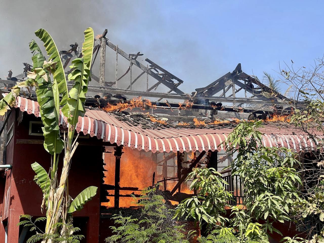ទុស្សេខ្សែភ្លើង ឆេះផ្ទះ១ខ្នងអស់ទាំងស្រុង