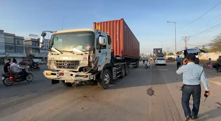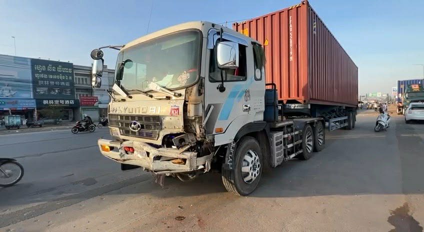 រាជធានីភ្នំពេញ ៖ រថយន្តកុងតឺន័រ១គ្រឿងបានបើកឆ្លងផ្លូវក្នុងល្បឿនលឿន ហើយក៏ជ្រុលទៅបុករថយន្តតូយ៉ូតាព្រូស១គ្រឿងទៀតដែលកំពុងបើកបរតាមផ្លូវត្រង់ពេញទំហឹង បណ្ដាលឲ្យរថយន្តព្រូសនោះខ្ទេច១ចំហៀងខាងឆ្វេងទាំងស្រុង និងបណ្ដាលឲ្យបុរសជនជតិចិនម្នាក់ ដែលជាអ្នកបើកបររថន្តព្រូសខាងលើនោះរងរបួសធ្ងន់ ផងដែរ ។