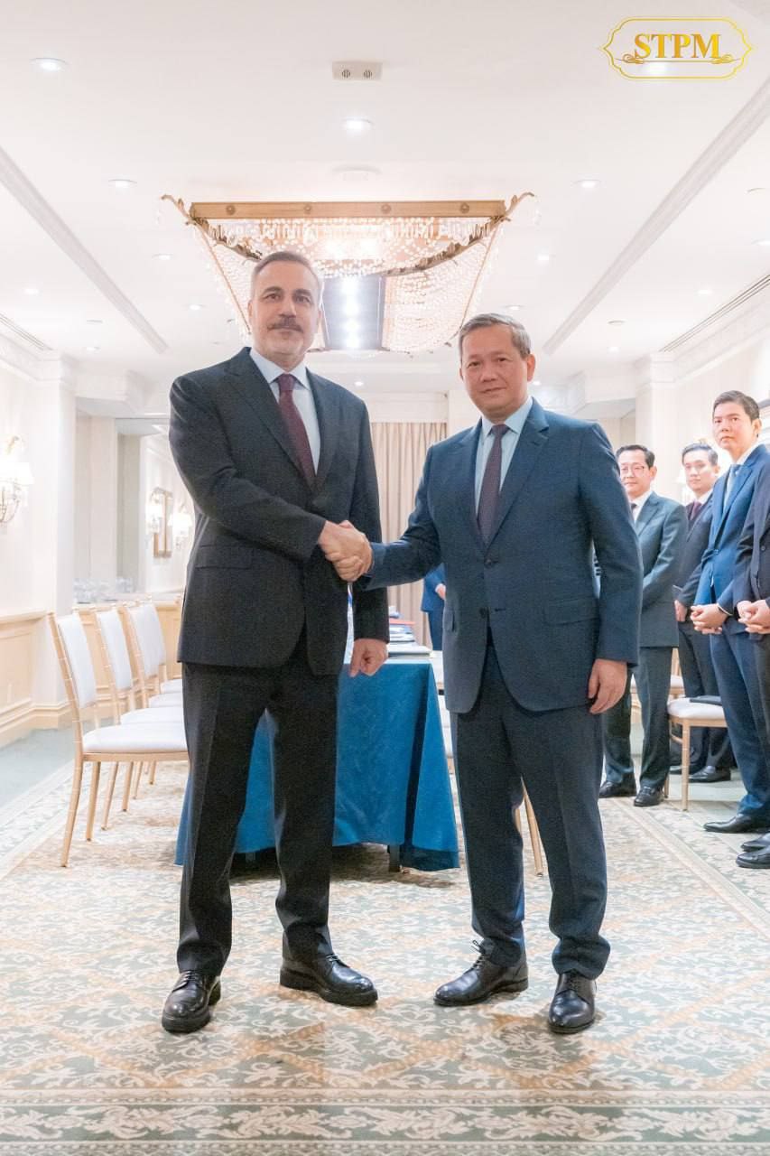 រាជធានីភ្នំពេញ ៖ នាព្រឹកថ្ងៃទី២០ ខែកុម្ភៈ ឆ្នាំ២០២៦ សម្ដេចមហាបវរធិបតី ហ៊ុន ម៉ាណែត នាយករដ្ឋមន្ត្រី នៃព្រះរាជាណាចក្រកម្ពុជា បានអនុញ្ញាឱ្យ ឯកឧត្តម Hakan Fidan រដ្ឋមន្ត្រីការបរទេសតួកគីយ៉េ ចូលជួបសម្ដែងការគួរសម និងពិភាក្សាការងារ ក្នុងឱកាស នៃការអញ្ជើញដឹកនាំគណៈប្រតិភូជាន់ខ្ពស់រាជរដ្ឋាភិបាលកម្ពុជា ចូលរួមកិច្ចប្រជុំលើកដំបូង នៃក្រុមប្រឹក្សាសន្តិភាព (Board of Peace) នៅរដ្ឋធានីវ៉ាស៊ីនតោន សហរដ្ឋអាម៉េរិក ។