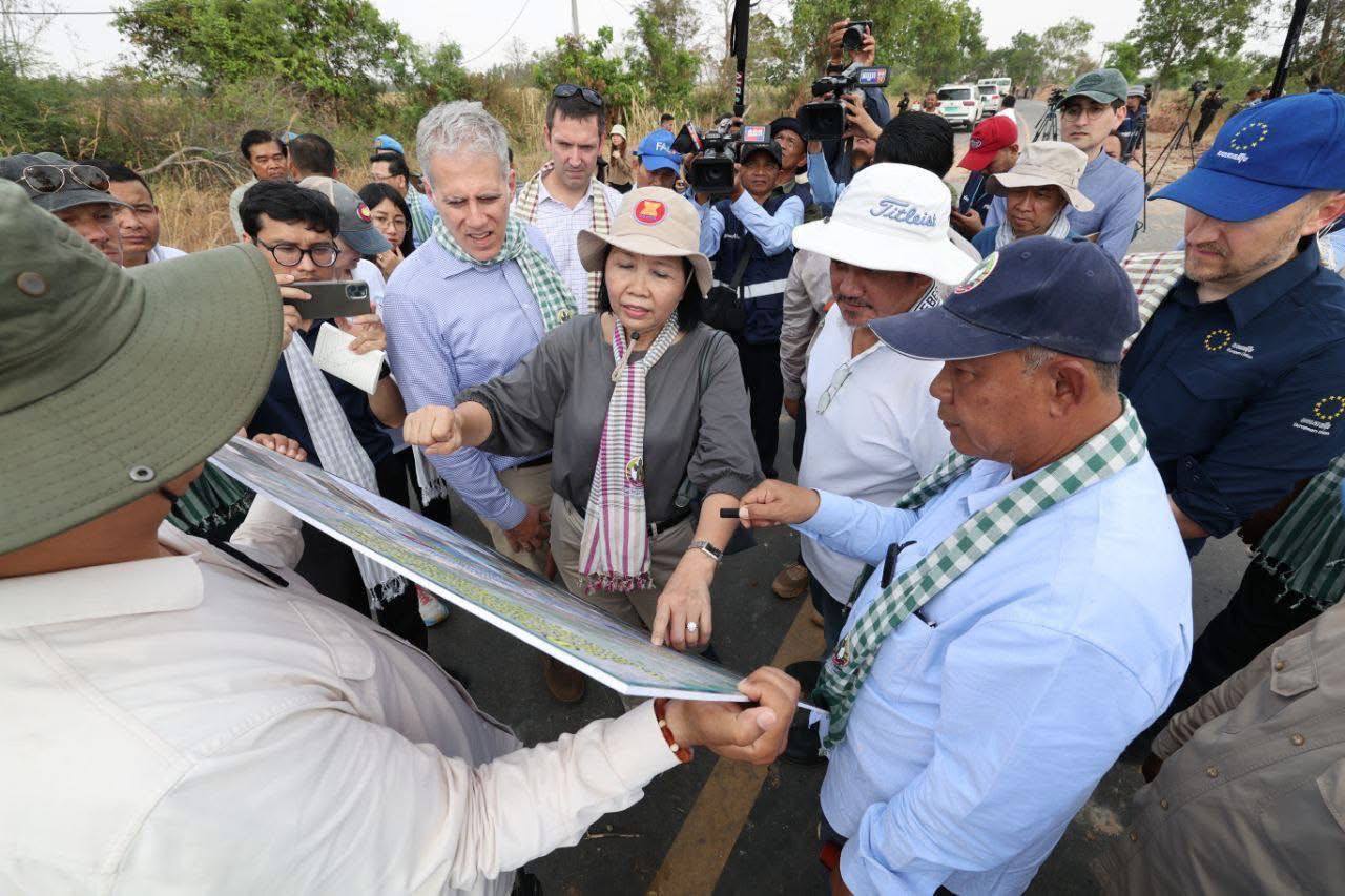 ខេត្តបន្ទាយមានជ័យ ៖ គណៈប្រតិភូអង្គទូតបរទេស និងអង្គការអន្តរជាតិប្រចាំកម្ពុជាប្រមាណ២១ស្ថាប័ន ចុះពិនិត្យជាក់ស្តែងទីតាំងភូមិជោគជ័យនិងភូមិព្រៃចាន់តំបន់បឹងត្រកួន កាលពីថ្ងៃទី២៣ ខែកុម្ភៈ ឆ្នាំ២០២៦ ស្ថិតនៅស្រុកអូរជ្រៅ និងស្រុកថ្មពួក ។