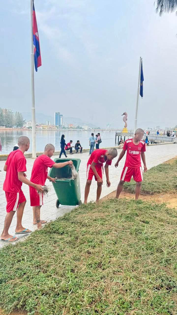 ខេត្តកំពត ៖ នៅថ្ងៃទី២៣ ខែកុម្ភៈ ឆ្នាំ២០២៦ កម្លាំងសមត្ថកិច្ចនៃស្នងការដ្ឋាននគរបាលខេត្តកំពត បាននាំក្រុមក្មេងទំនើងដើរសម្អាតអនាម័យនៅតាមទីសាធារណៈ ស្ថិតក្នុងក្រុងកំពត ដោយតម្រូវឲ្យពួកគេស្រែកពាក្យថា «ខ្ញុំឈប់បង្ហោះម៉ូតូទៀតហើយ» ។