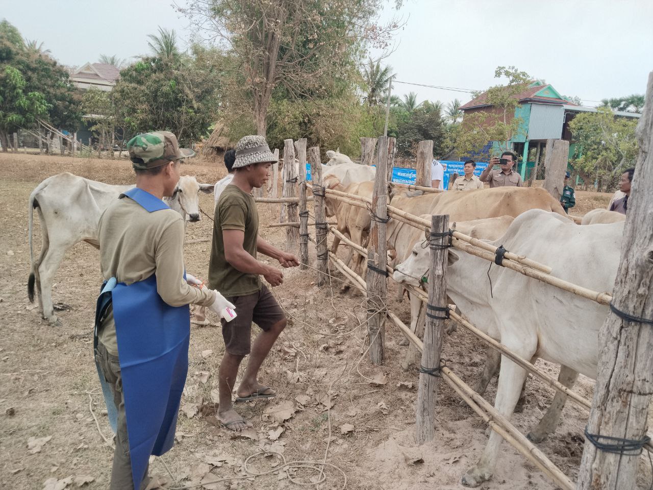 មន្ត្រីពេទ្យសត្វចុះចាក់វ៉ាក់សាំងបង្ការជំងឺបូសខ្យល់លើសត្វគោក្របីរបស់ពលរដ្ឋក្នុងឃុំចោលម៉ោង ស្រុកទឹកផុស