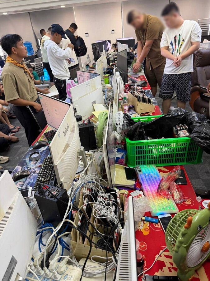 ជនសង្ស័យប្រុសស្រីទាំង២១នាក់ ដែលត្រូវបានឃាត់ខ្លួននេះ រួមមាន ៖ ជនជាតិចិន ចំនួន១៦នាក់ ឥណ្ឌា ចំនួន១នាក់ ប៉ាគីស្ថាន ចំនួន២នាក់ ក្នុងនោះស្ត្រី១នាក់ និង នេប៉ាល់ ចំនួន២នាក់។ ក្នុងនោះដែរ សមត្ថកិច្ចក៏បានដកហូតវត្ថុតាង រួមមាន ៖ កុំព្យូទ័រ All in One កុំព្យូទ័រយួរដៃ និងទូរសព្ទដៃមួយចំនួនផងដែរ ។