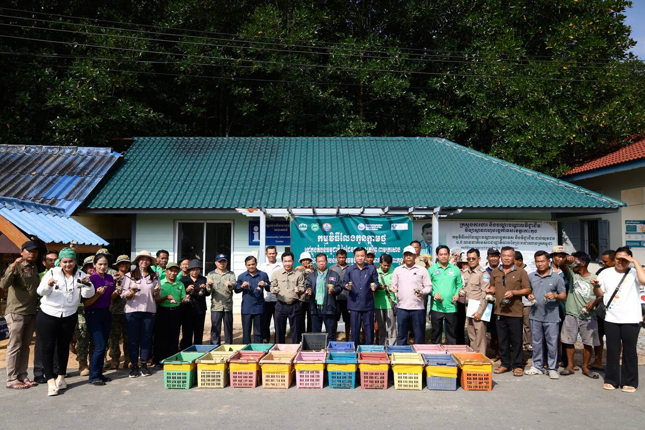 រាជធានីភ្នំពេញ ៖ ក្រសួងបរិស្ថាន តាមរយៈគម្រោងបន្ស៊ាំ និងភាពធន់នឹងអាកាសធាតុ នៃសហគមន៍ពឹងអាស្រ័យលើធនធានជលផលនៅតំបន់ឆ្នេរ នៃប្រទេសកម្ពុជា (CamAdapt) នៅថ្ងៃទី២៦ ខែកុម្ភៈ ឆ្នាំ២០២៦ បានព្រលែងកូនក្តាមថ្ម ៤០០គីឡូក្រាម ស្មើនឹងកូនក្តាមចំនួនប្រមាណ៨,០០០ក្បាល ចូលទៅក្នុងធម្មជាតិ ក្នុងសហគមន៍តំបន់ការធម្មជាតិ ពាមក្រសោប និងសហគមន៍តំបន់ការពារធម្មជាតិបឹងកាឆាង ក្នុងស្រុកមណ្ឌលសីមា ខេត្តកោះកុង ដើម្បីស្តារធនធានជលផល ពង្រឹងប្រព័ន្ធអេកូឡូស៊ីតំបន់ឆ្នេរកម្ពុជា និងលើកកម្ពស់ជីវភាពសហគមន៍តំបន់ការពារធម្មជាតិ ។