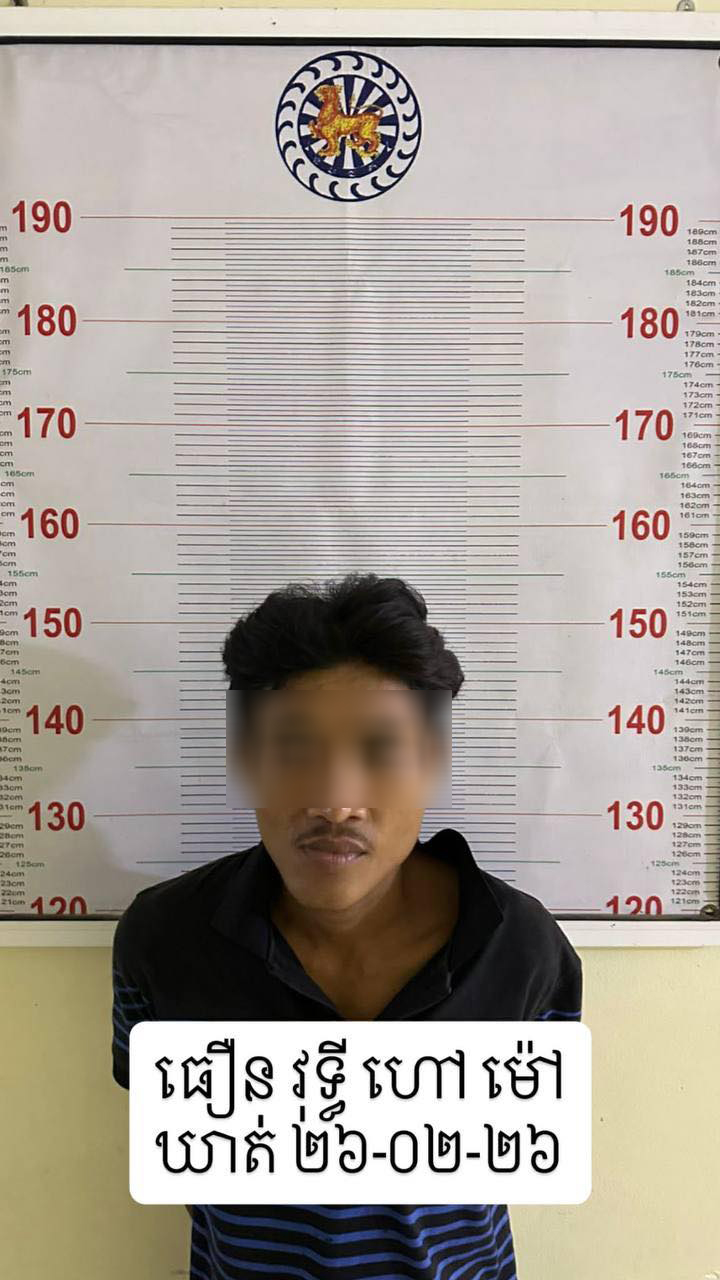 រាជធានីភ្នំពេញ ៖ ដោយអនុវត្តតាមបទបញ្ជារបស់លោកឧត្តមសេនីយ៍ឯក ង៉េង ជួ ប្រធាននាយកដ្ឋាននគរបាលព្រហ្មទណ្ឌ នៅថ្ងៃទី២៦ ខែកុម្ភៈ ឆ្នាំ២០២៦ វេលាម៉ោង១៩៖៣៥នាទី លោកឧត្តមសេនីយ៍ត្រី ប៊ុត វណ្ណារដ្ឋ អនុប្រធាននាយកដ្ឋាន ចូលរួមដោយលោកវរសេនីយ៍ឯក ញ៉ែម វ៉ន នាយការិយាល័យ និងលោកវរសេនីយ៍ទោ ប៊ុត ស៊ីម៉េង នាយការិយាល័យបានដឹកនាំកម្លាំងជំនាញធ្វើការឃាត់ខ្លួនជនសង្ស័យ ចំនួន២នាក់ ស្ថិតនៅត្រង់ចំណុចផ្លូវ៤៨៤ សង្កាត់ផ្សារដើមថ្កូវ ខណ្ឌចំការមន រាជធានីភ្នំពេញ ។