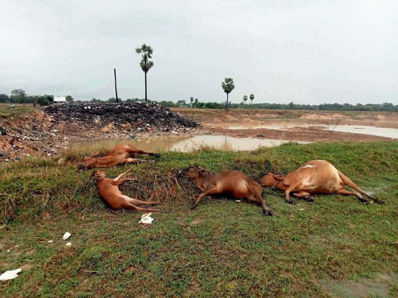 ហើយនៅល្ងាចកើតហេតុ ឃើញមានមេឃរកកលភ្លៀង ម្ចាស់គោក្របី នាំគ្នាឡើងមកផ្ទះជ្រកភ្លៀង ខណៈពេលភ្លៀងមួយធំកក់ខែ លាយឡំខ្យល់ផ្គរន្ទះលាន់គ្រហឹម លុះពេលរាំងភ្លៀងទៅកៀងគោក្របីមកផ្ទះវិញ ស្រាប់តែឃើញគោរបស់គាត់ចំនួន០៤ក្បាល ត្រូវរន្ទះបាញ់ងាប់រដូករណែលនៅជិតរណ្តៅដីចាក់សំរាម គួរឲ្យសោកស្តាយ។