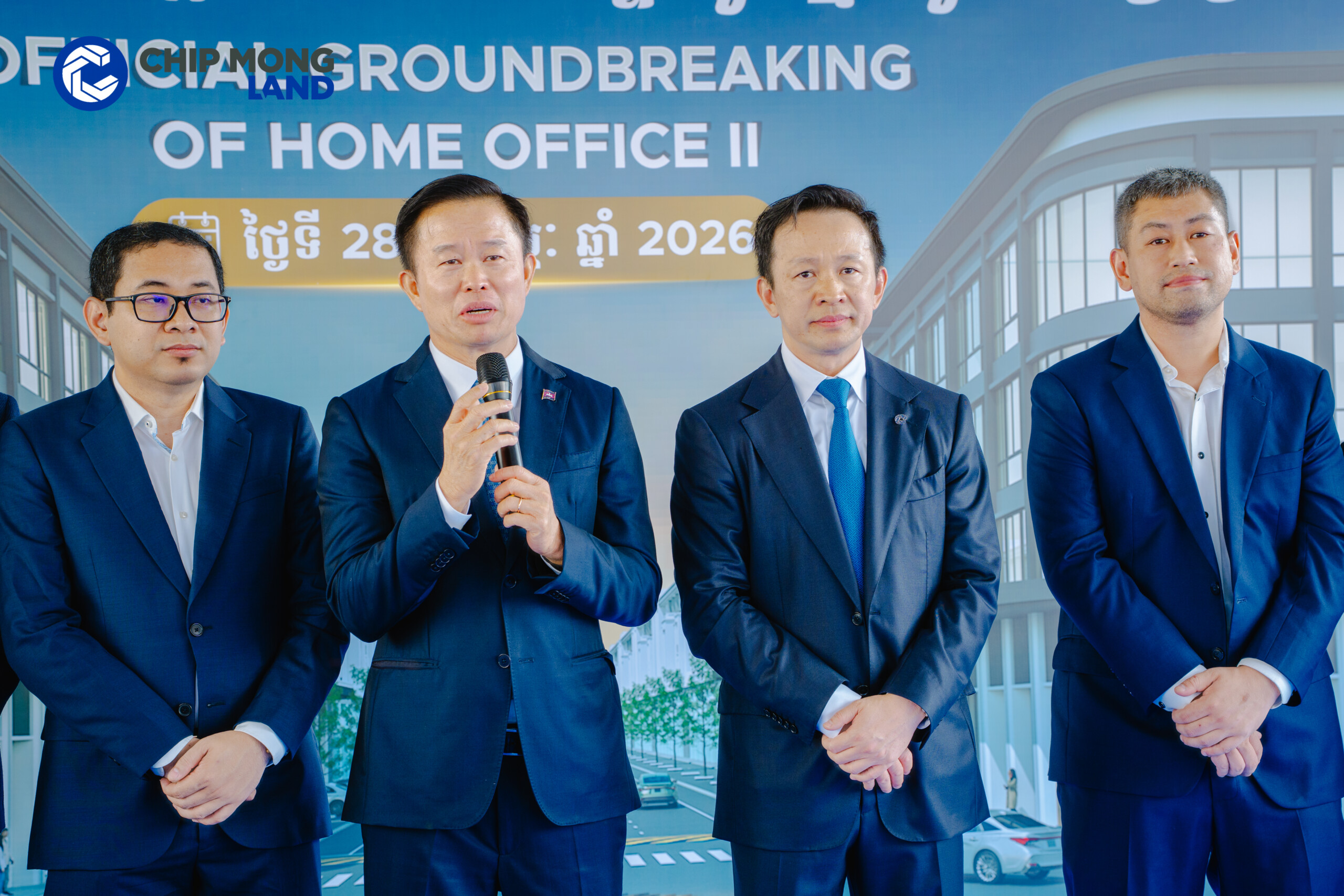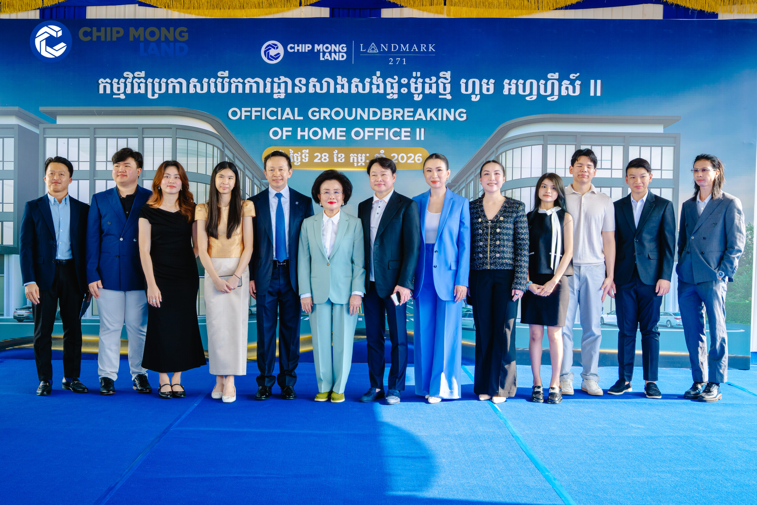 រាជធានីភ្នំពេញ, ថ្ងៃទី ២៨ ខែកុម្ភៈ ឆ្នាំ២០២៦ ៖ ក្រុមហ៊ុន ជីប ម៉ុង លែន បានបោះជំហានទៅមុខយ៉ាងមុតមាំមួយកម្រិតទៀត តាមរយៈការរៀបចំពិធីបុកគ្រឹះបើកការដ្ឋានសាងសង់ និងបើកលក់ Pre-Sales ជាផ្លូវការនូវ “Home Office II” ដែលជាប្រភេទ ផ្ទះអាជីវកម្មម៉ូដថ្មីសន្លាង និងមានភាពច្នៃប្រឌិតខ្ពស់បំផុតនៅក្នុងតំបន់នាដើមឆ្នាំ ២០២៦ នេះ ។