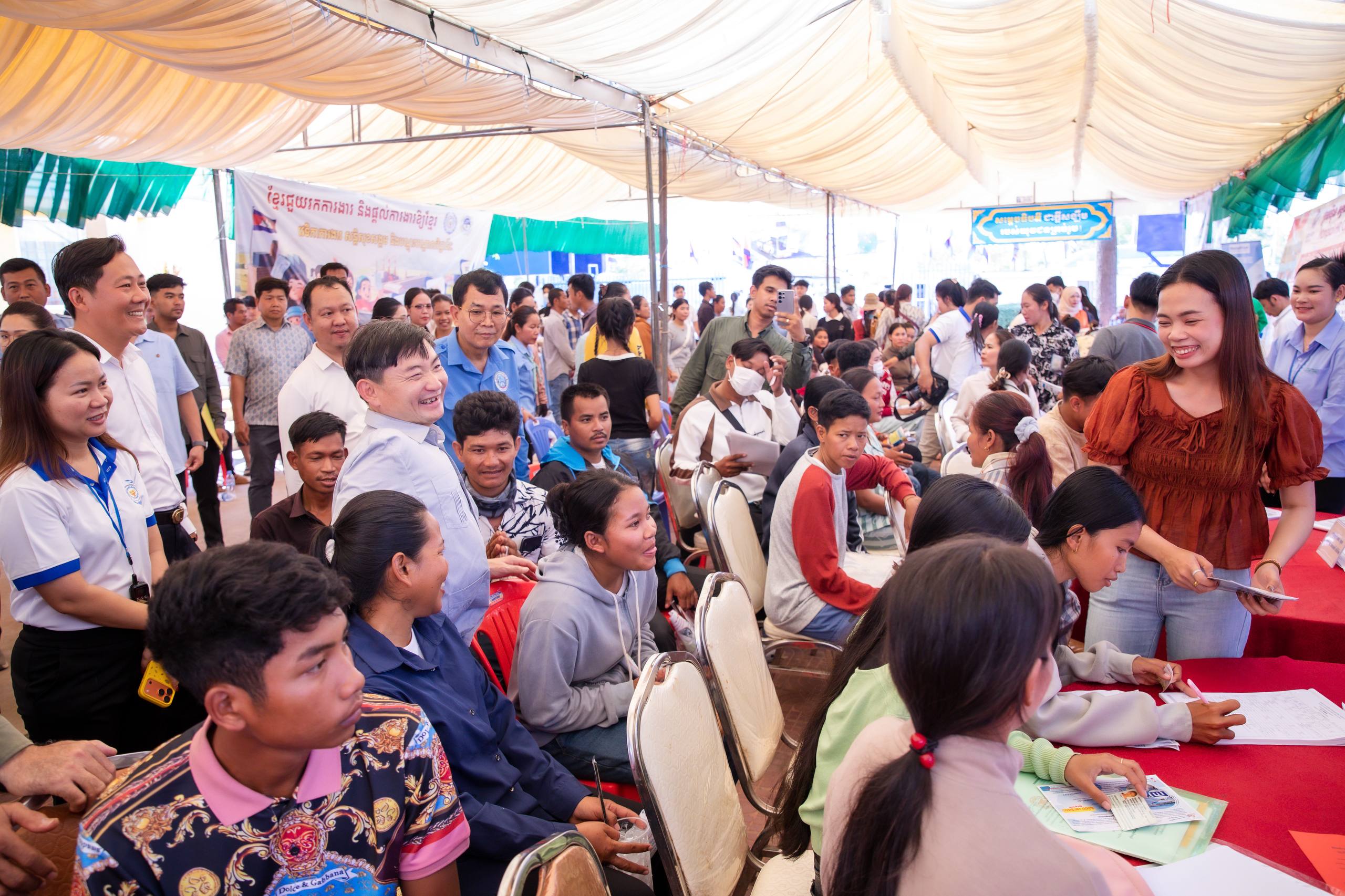ខេត្តពោធិ៍សាត់ ៖ រោងចក្រ សគ្រាស និងក្រុមហ៊ុនធំៗចំនួន ១០ បានចូលរួមសម្ភាសជ្រើសរើសបុគ្គលិកភ្លាមៗដោយផ្ទាល់តាមរយៈវេទិកាការងារ សន្តិសុខសង្គម និងបណ្តុះបណ្តាលវិជ្ជាជីវៈ ក្រោមប្រធានបទ «ខ្មែរជួយរកការងារ និងផ្ដល់ការងារឱ្យខ្មែរ» ដែលត្រូវបានរៀបចំឡើងកាលពីថ្ងៃទី ១ ខែមីនា ឆ្នាំ ២០២៦ នៅបរិវេណសាលាស្រុកក្រគរ ខេត្តពោធិ៍សាត់ ក្រោមវត្តមាន ឯកឧត្តម ហេង សួរ រដ្ឋមន្ត្រីក្រសួងការងារ និងបណ្ដុះបណ្ដាលវិជ្ជាជីវៈ និងមានបងប្អូនអតីពលករ និងយុវជនរកការងារជាង ៨០០នាក់ចូលរួម ។