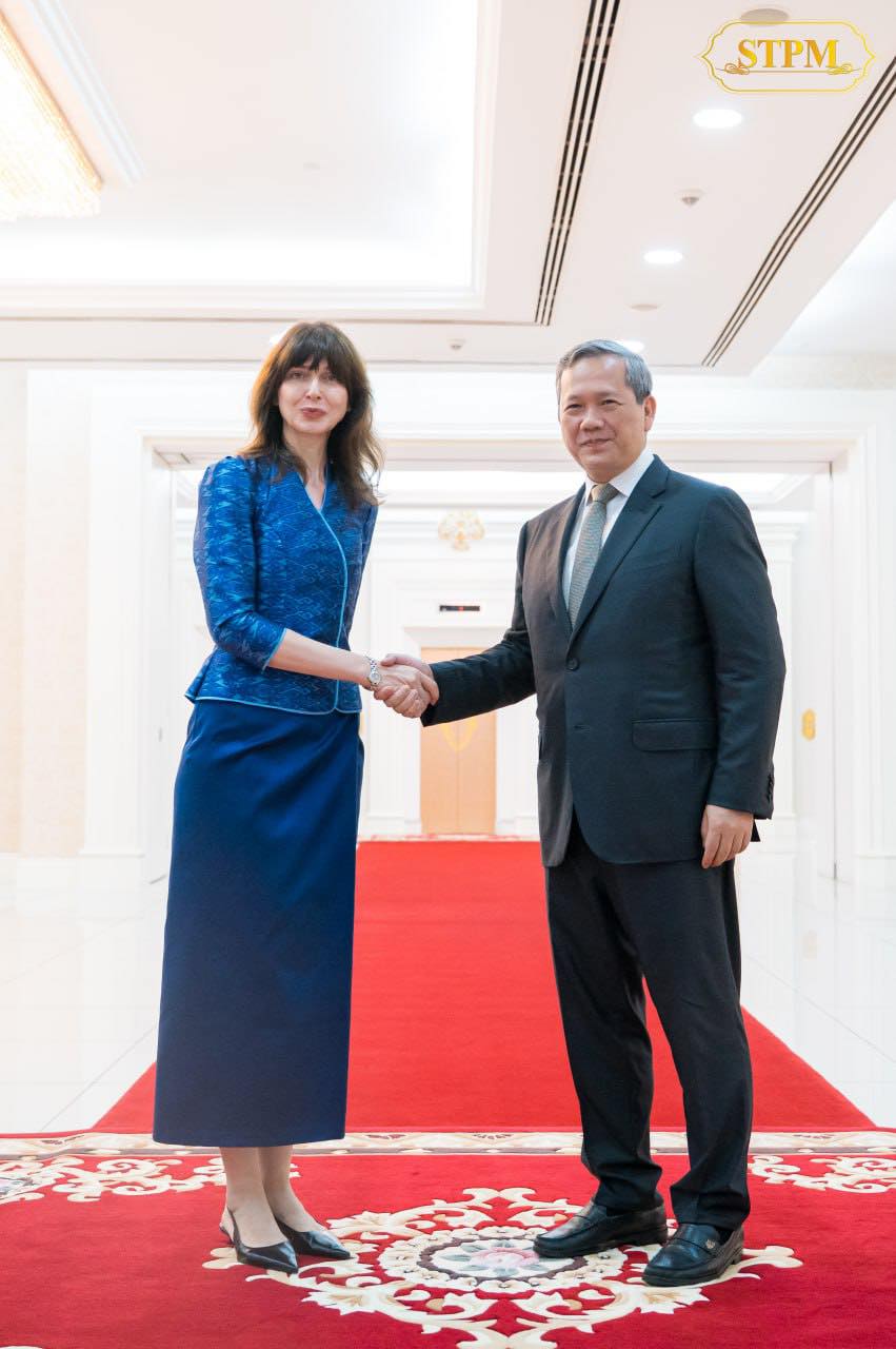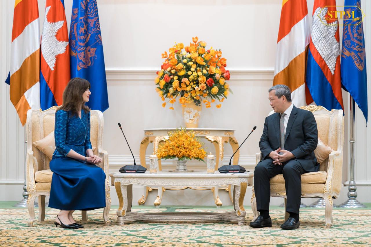 រាជធានីភ្នំពេញ ៖ នាព្រឹកថ្ងៃទី២ ខែមីនា ឆ្នាំ២០២៦ សម្ដេចមហាបវរធិបតី ហ៊ុន ម៉ាណែត នាយករដ្ឋមន្ត្រី នៃព្រះរាជាណាចក្រកម្ពុជា បានអនុញ្ញាតឱ្យលោកជំទាវ Vladanka Andreeva អ្នកសម្របសម្រួលអង្គការសហប្រជាជាតិ ប្រចាំព្រះរាជាណាចក្រកម្ពុជា ចូលជួបសម្ដែងការគួរសម និងពិភាក្សាការងារ នៅវិមានសន្ដិភាព ។