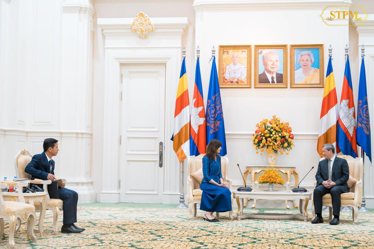 ជាការឆ្លើយតប សម្ដេចធិបតីបានសម្ដែងនូវសេចក្ដីសោមនស្សរីករាយ និងស្វាគមន៍លោកជំទាវ ដែលបានមកបំពេញបេសកកម្មការងារជាលើកទី២ នៅកម្ពុជា ។