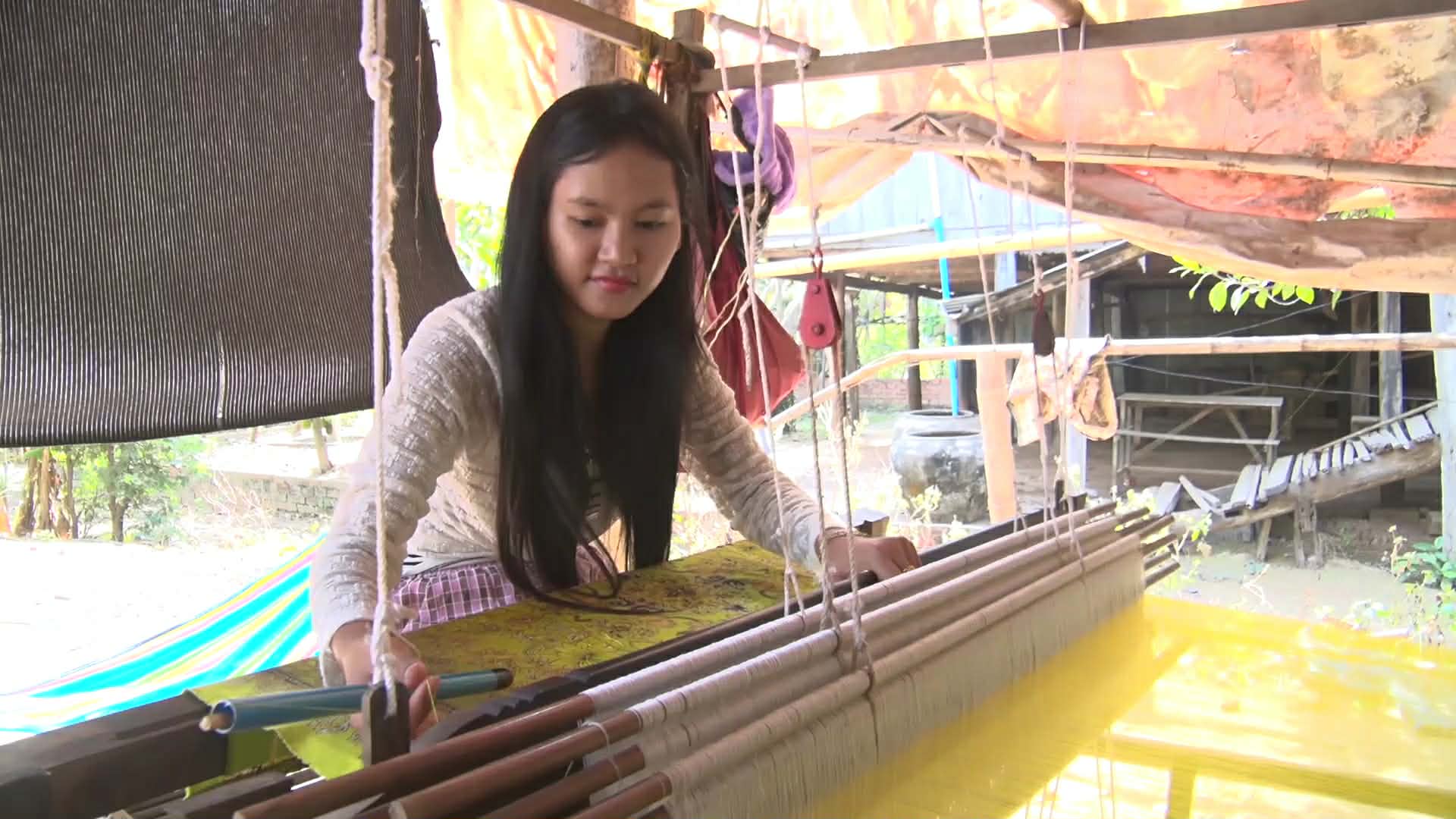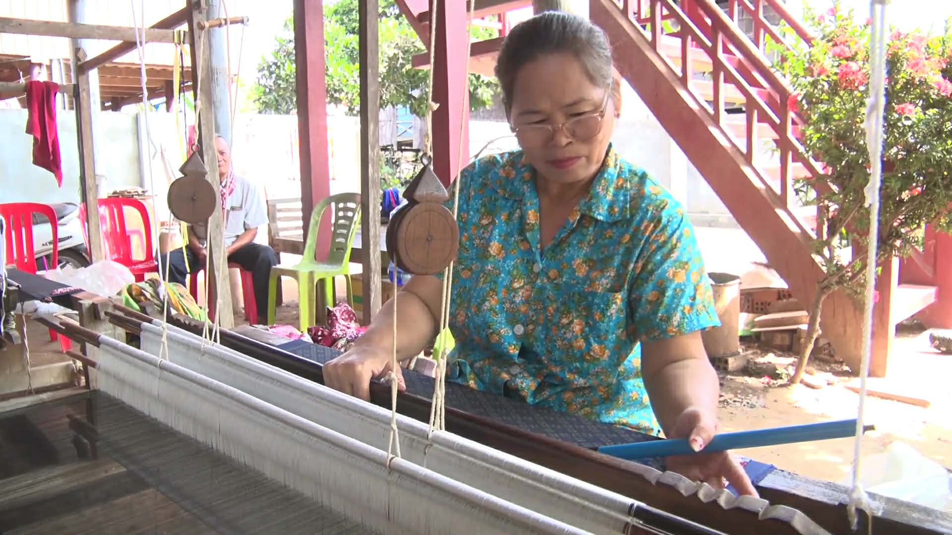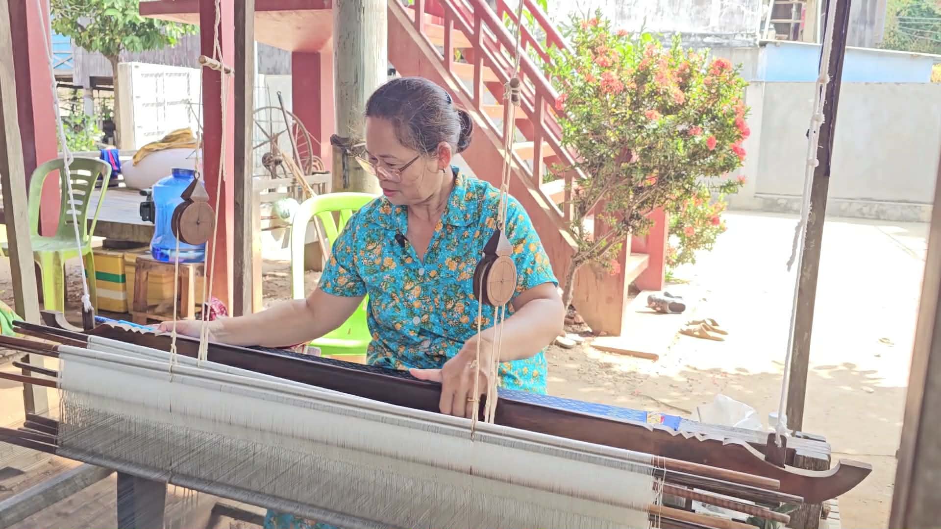 ខេត្តព្រៃវែង ៖ ក្នុងសម្លេងរណ្តំនៃក្តារអង្រឹងត្បាញដែលបន្លឺឡើងចេញពីក្រោមផ្ទះ ស្ត្រីវ័យចំណាស់ៗនៅក្នុងឃុំព្រែកចង្ក្រាន្ត ស្រុកស៊ីធរកណ្តាល កំពុងតែមមារញឹកលើការងារត្បាញហូល ផាមួង ដែលជាមុខរបរបន្សល់ទុកតាំងពីដូនតា ។