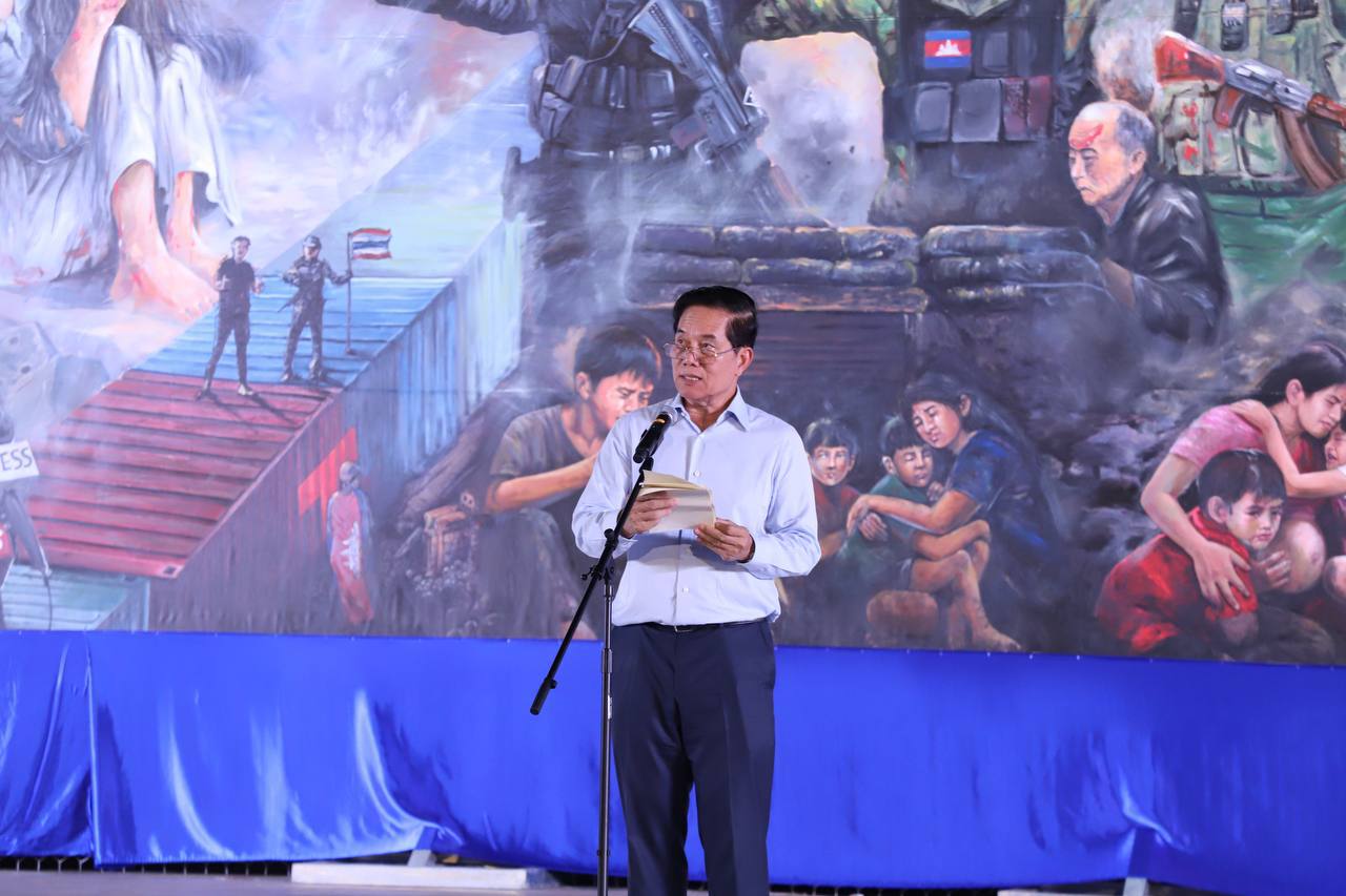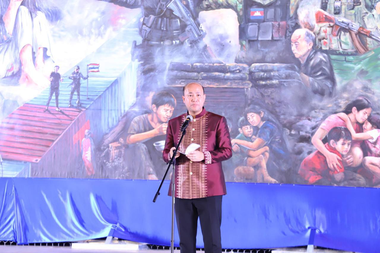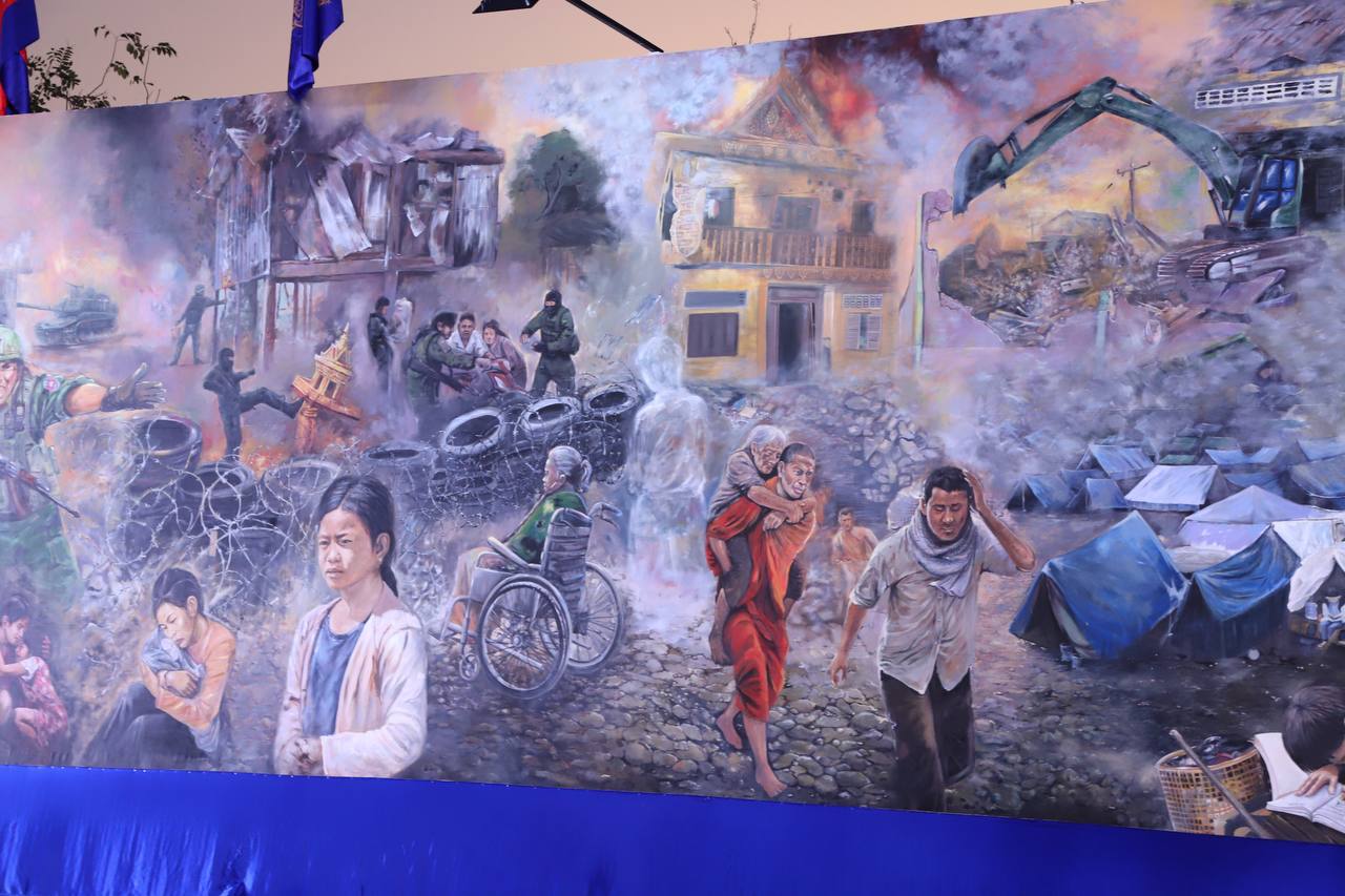 ពិធីបើកបង្ហាញជាផ្លូវការ ផ្ទាំងគំនូរស្នាដៃសិល្បៈ ដែលបញ្ជាក់ពីការឈ្លានពានរបស់កងទ័ពថៃ មកលើកម្ពុជា នៅសួនច្បារវត្តបទុមវតី
