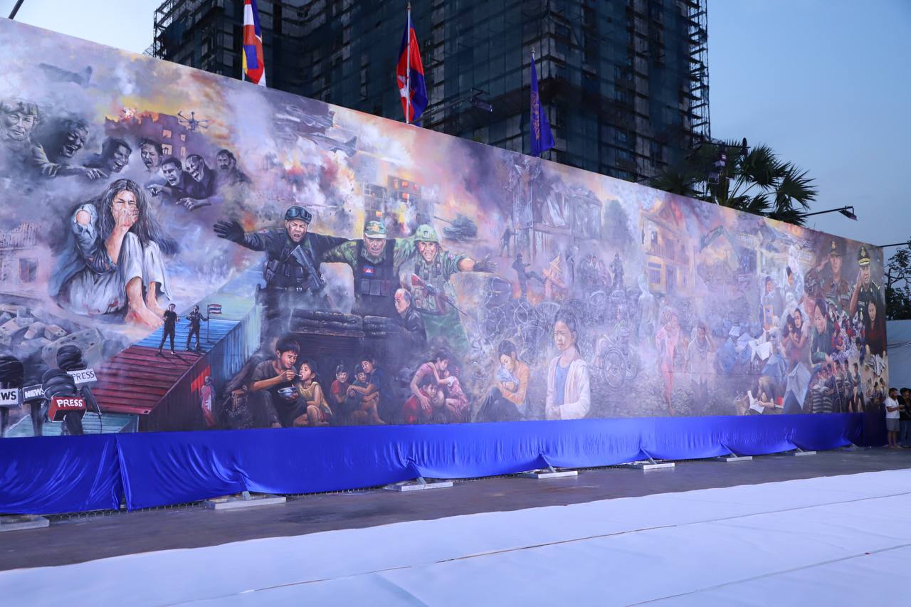 រាជធានីភ្នំពេញ ៖ ផ្ទាំងគំនូរ “សិល្បៈដើម្បីសន្តិភាព” ដែលស្ថិតនៅសួនច្បារវត្តបទុមវតី សង្កាត់ចតុមុខ ខណ្ឌដូនពេញ បានបើកបង្ហាញជាផ្លូវការ នាល្ងាចថ្ងៃទី៣ ខែមីនា…