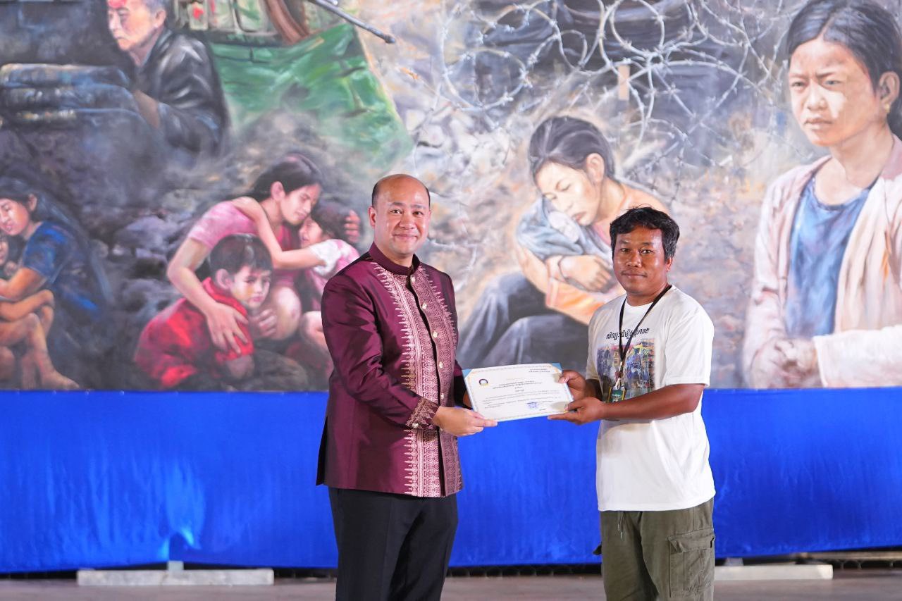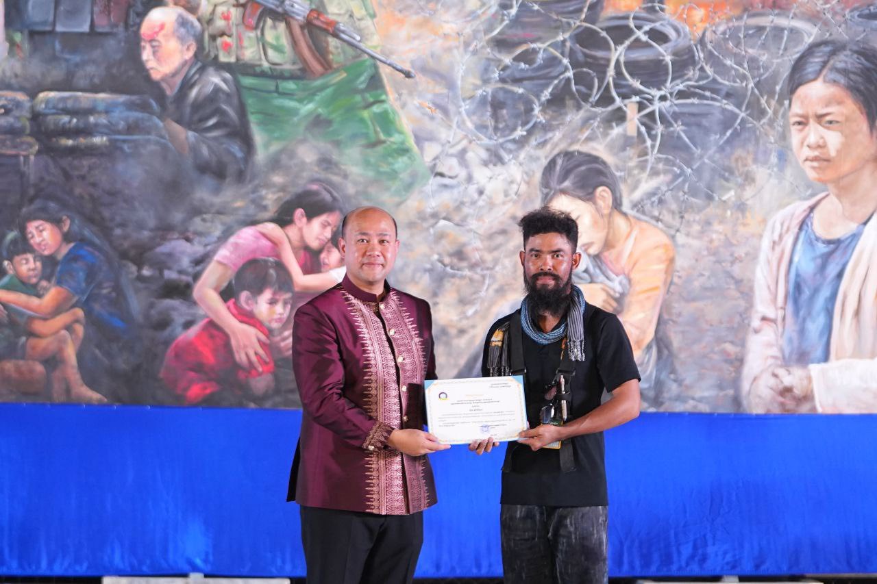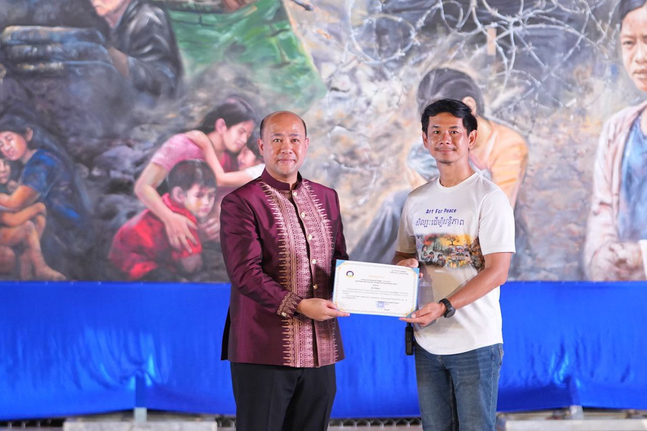 លោក បានគូសបញ្ជាក់ផងដែរថា ផ្ទាំងគំនូរនេះ បានបង្ហាញនូវស្លាកស្នាម នៃការខ្ទេចខ្ទាំ ភាពសោកសៅ និងការឈឺចាប់ដែលបានកើតមានឡើង ដែលនេះជាអ្វីដែលកម្ពុជាមិនបានជ្រើសរើស និងគ្មានជម្រើស ។ ជាមួយគ្នានេះ វាក៏បានបង្ហាញផងដែរថាយើងទាំងអស់គ្នានៅទីនេះមិនភ្លេចការលះបង់សាច់ស្រស់ឈាមស្រស់ និងពលិកម្មគ្រប់បែបយ៉ាងរបស់វីរយុទ្ធជនរបស់យើង ហើយក៏មិនបានភ្លេចដែរ ចំពោះបងប្អូនប្រជាពលរដ្ឋប្រមាណជិត៨ម៉ឺននាក់ ដែលជាជនភៀសសឹក មិនទាន់អាចត្រលប់ទៅគេហដ្ឋានរបស់ខ្លួនវិញបាននាពេលនេះ ។