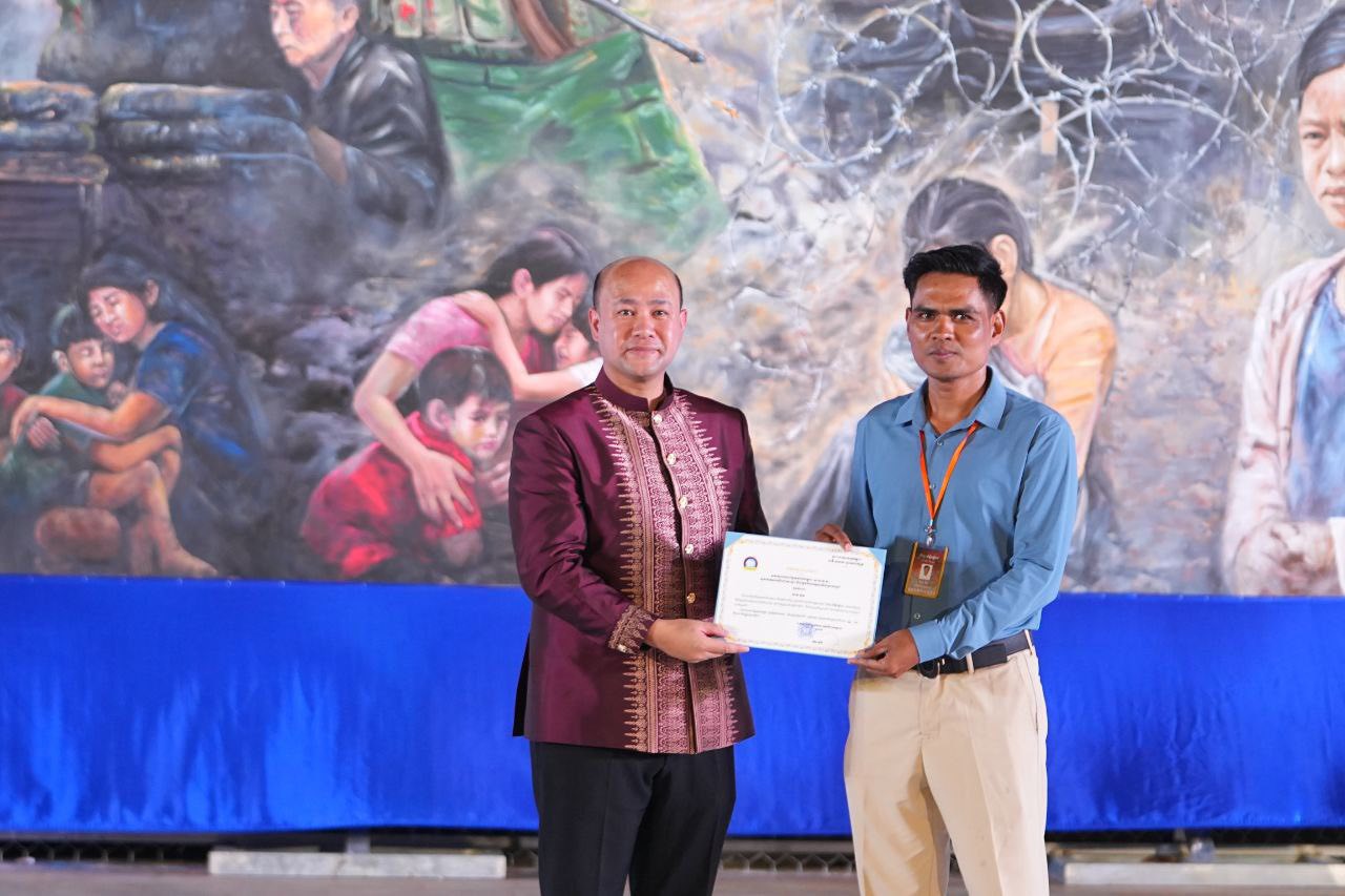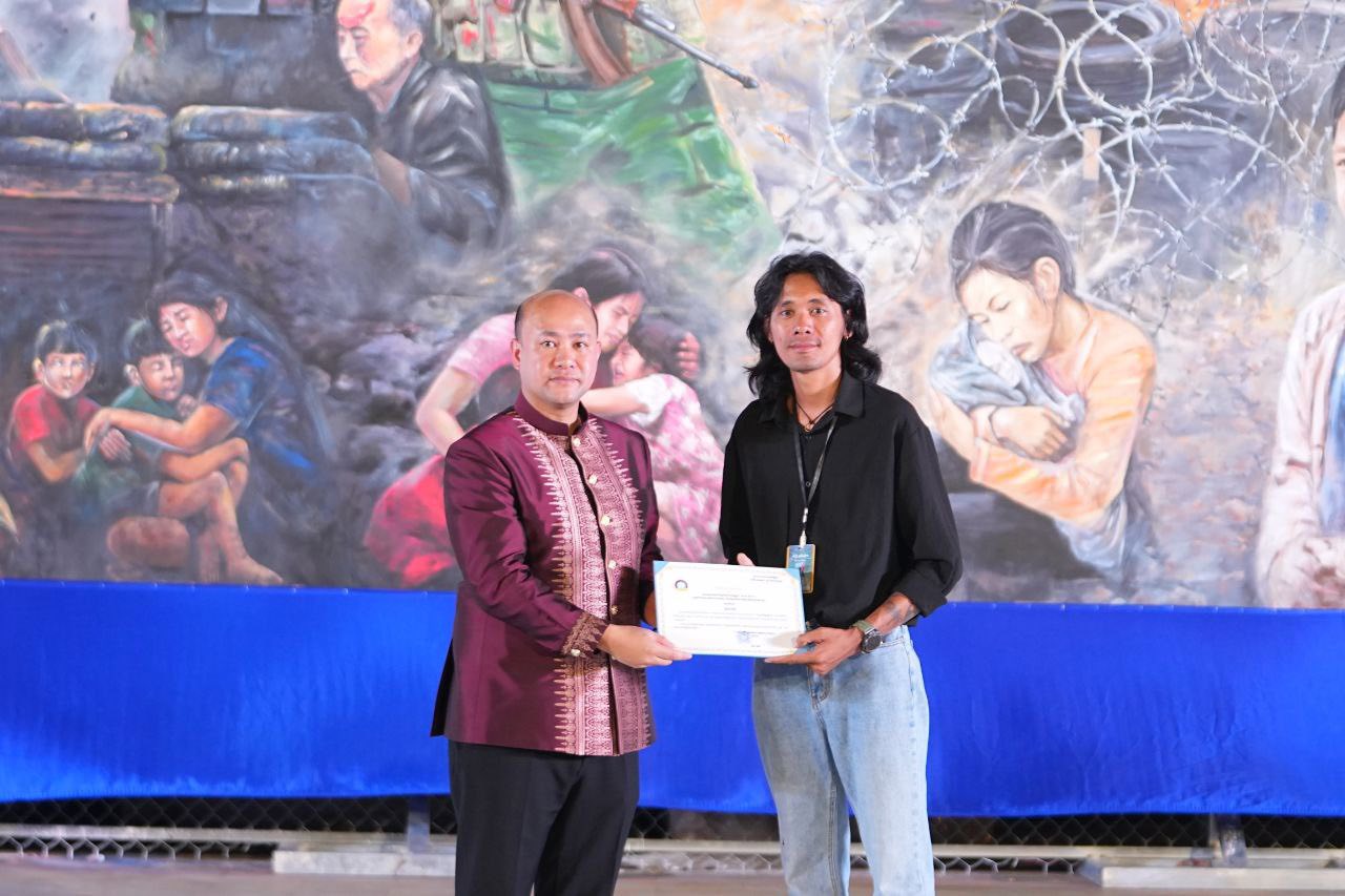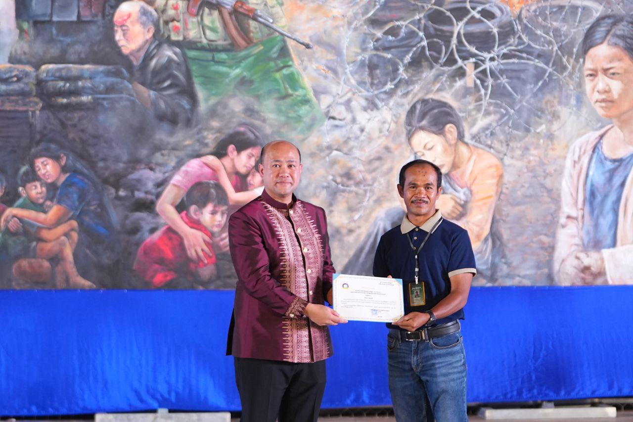 លោក បានគូសបញ្ជាក់ផងដែរថា ផ្ទាំងគំនូរនេះ បានបង្ហាញនូវស្លាកស្នាម នៃការខ្ទេចខ្ទាំ ភាពសោកសៅ និងការឈឺចាប់ដែលបានកើតមានឡើង ដែលនេះជាអ្វីដែលកម្ពុជាមិនបានជ្រើសរើស និងគ្មានជម្រើស ។ ជាមួយគ្នានេះ វាក៏បានបង្ហាញផងដែរថាយើងទាំងអស់គ្នានៅទីនេះមិនភ្លេចការលះបង់សាច់ស្រស់ឈាមស្រស់ និងពលិកម្មគ្រប់បែបយ៉ាងរបស់វីរយុទ្ធជនរបស់យើង ហើយក៏មិនបានភ្លេចដែរ ចំពោះបងប្អូនប្រជាពលរដ្ឋប្រមាណជិត៨ម៉ឺននាក់ ដែលជាជនភៀសសឹក មិនទាន់អាចត្រលប់ទៅគេហដ្ឋានរបស់ខ្លួនវិញបាននាពេលនេះ ។