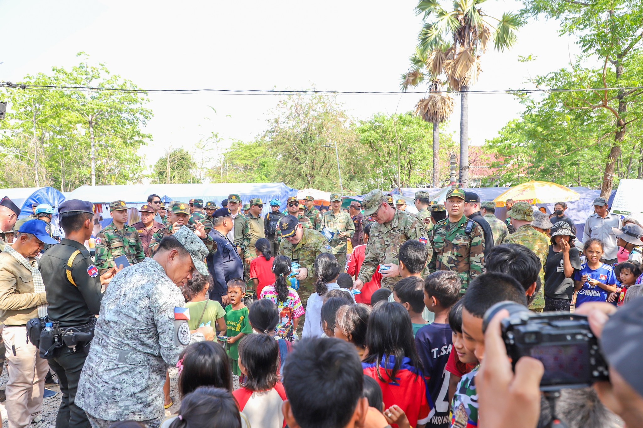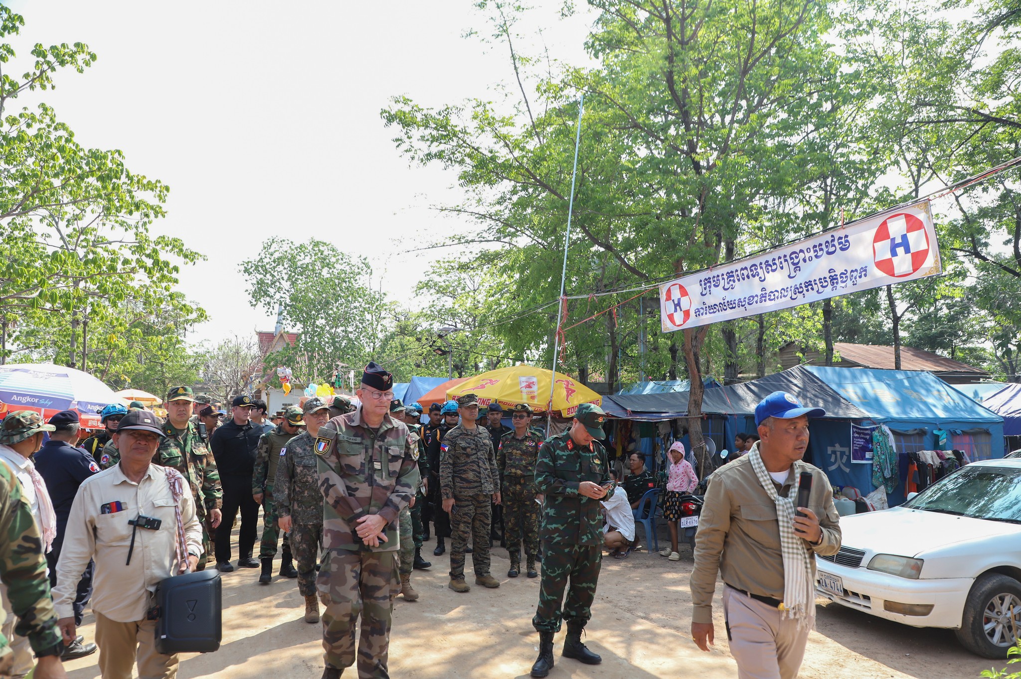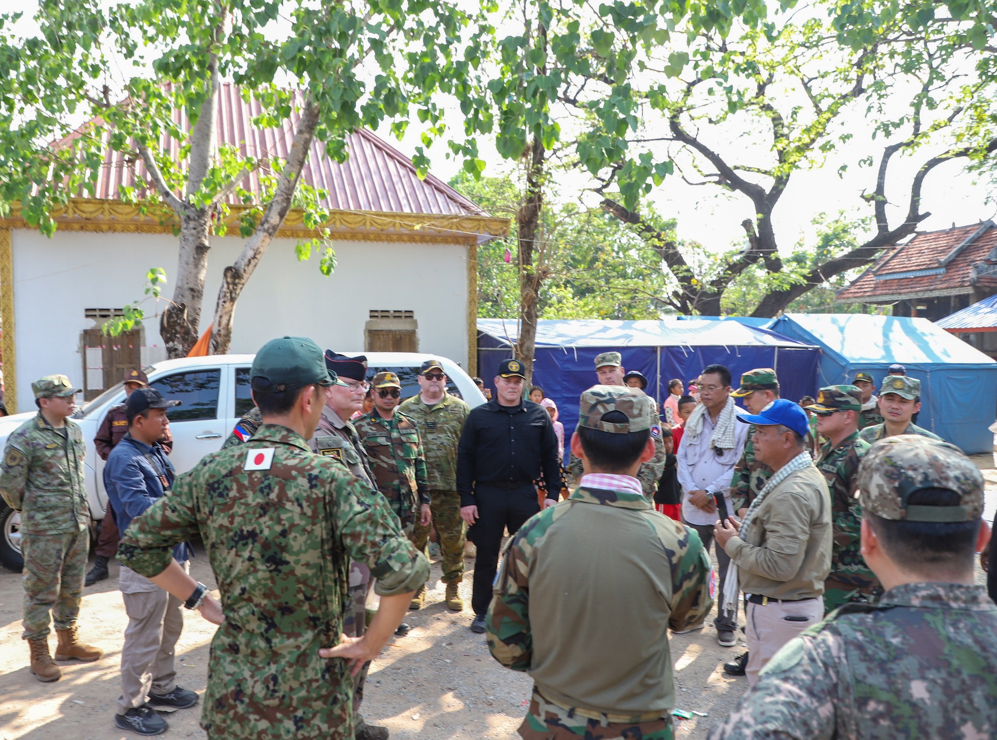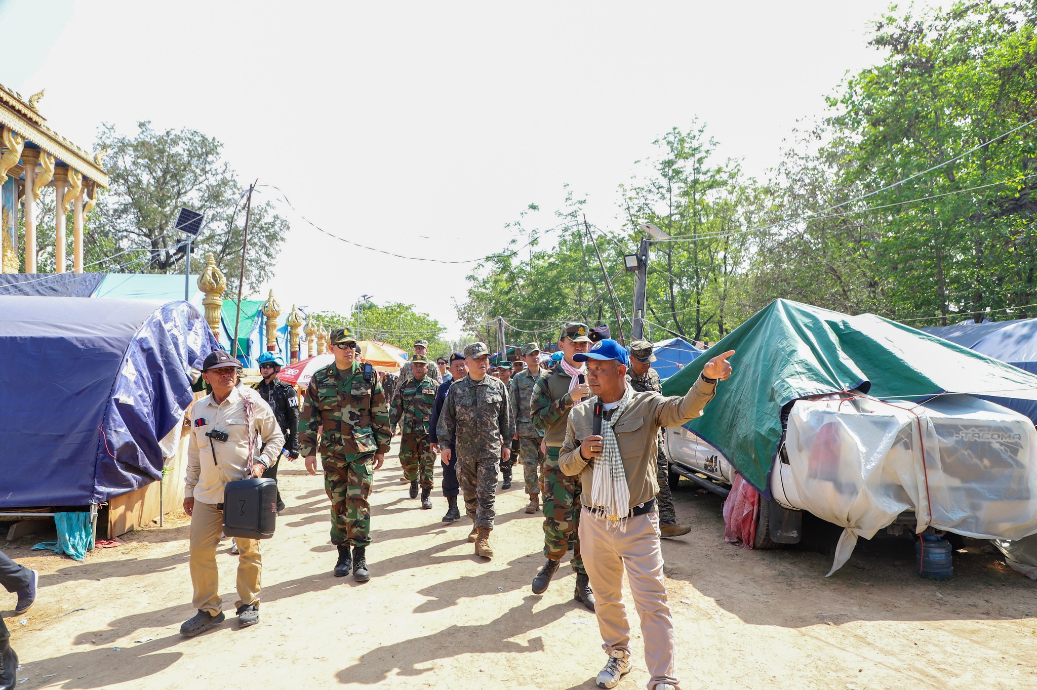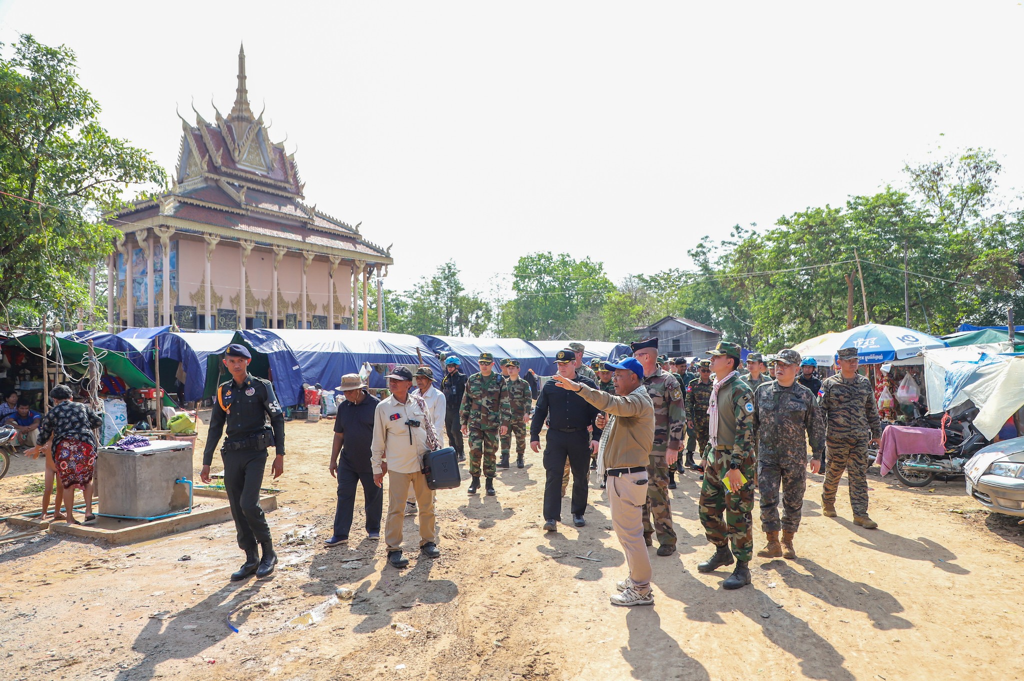 អនុព័ន្ធយោធាបរទេស ប្រចាំកម្ពុជា ចុះសួរសុខទុក្ខប្រជាជនភៀសសឹកកម្ពុជា កំពុងបន្តរស់នៅជំរំក្នុងវត្តកណ្តោល ស្រុកថ្មពួក