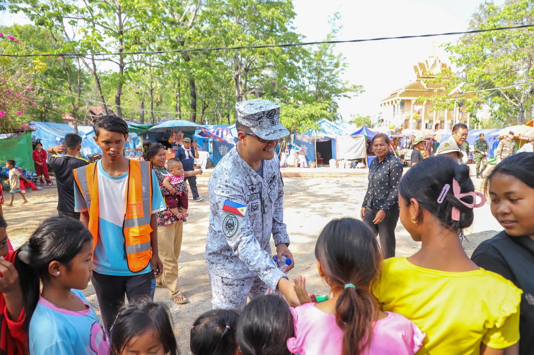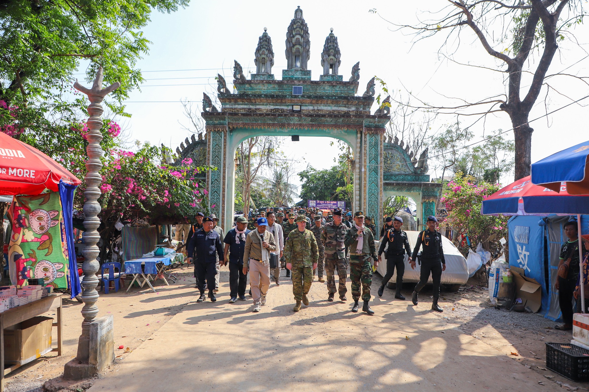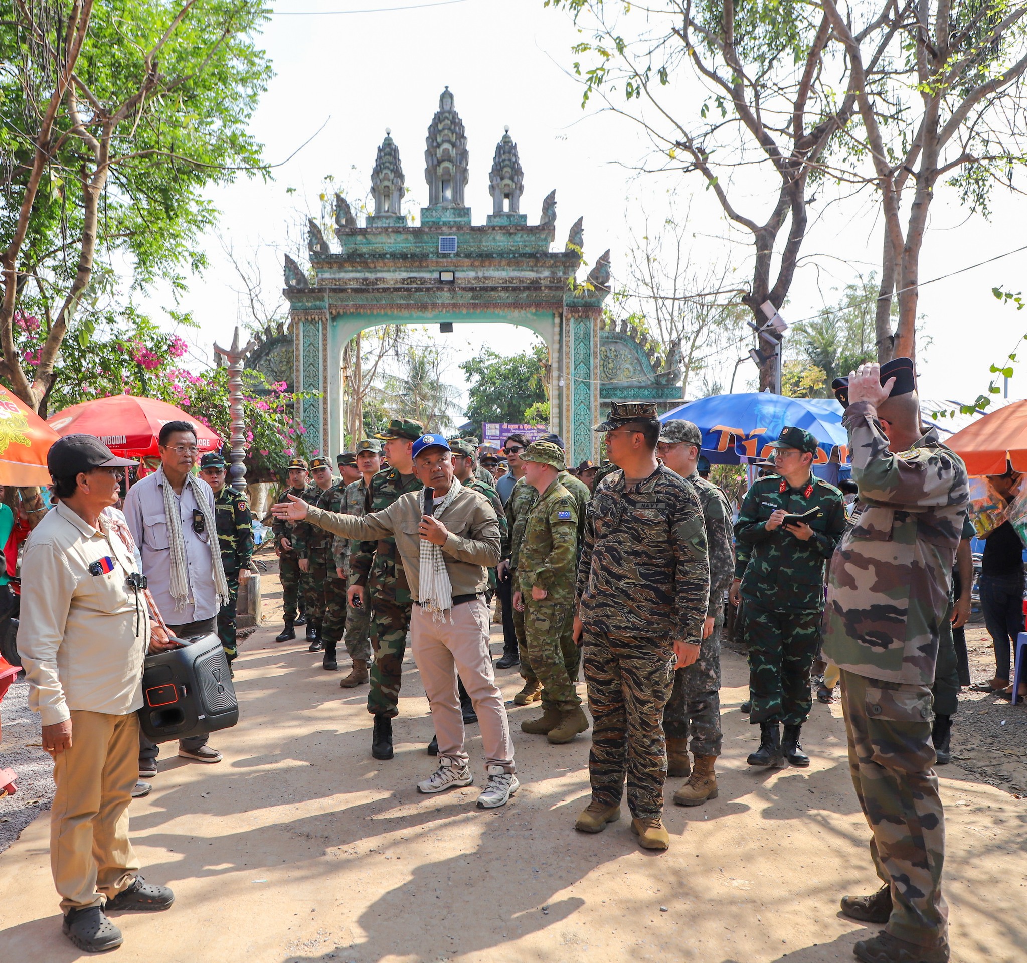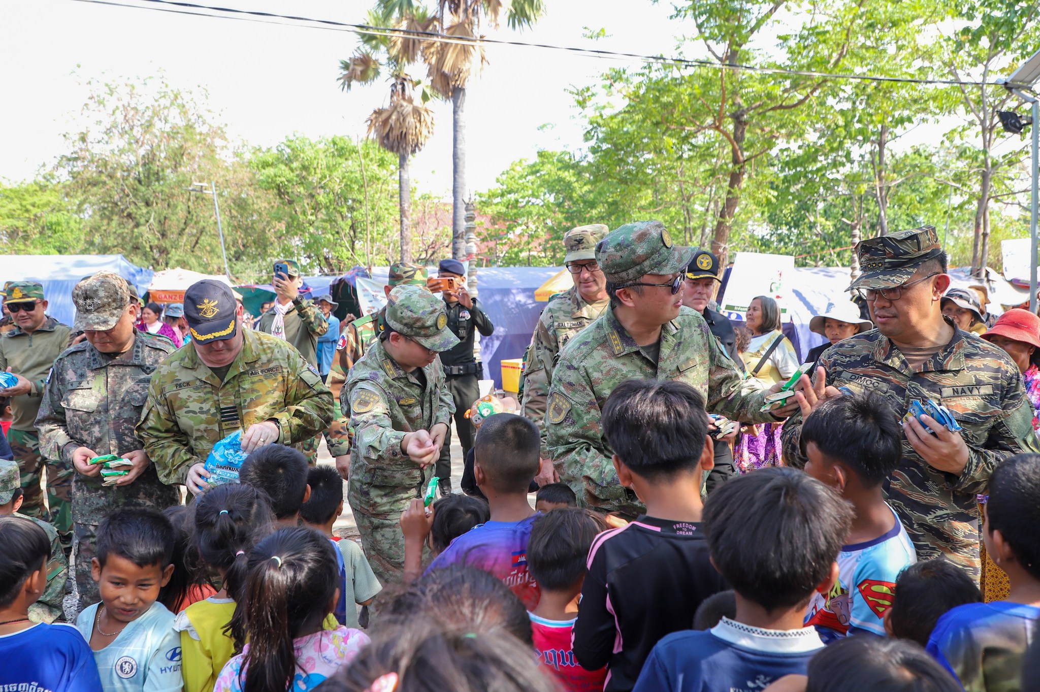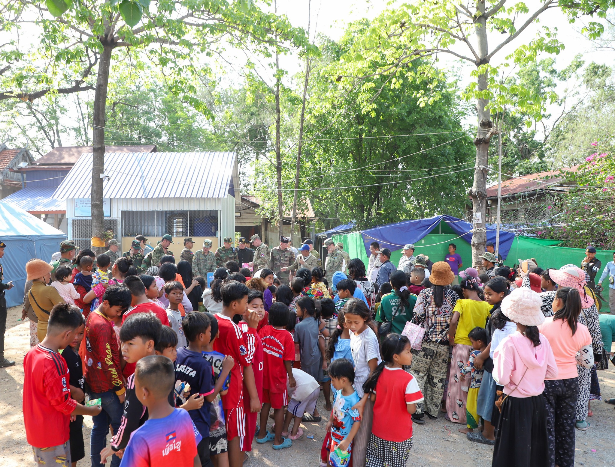អនុព័ន្ធយោធាបរទេស ប្រចាំកម្ពុជា ចុះសួរសុខទុក្ខប្រជាជនភៀសសឹកកម្ពុជា កំពុងបន្តរស់នៅជំរំក្នុងវត្តកណ្តោល ស្រុកថ្មពួក