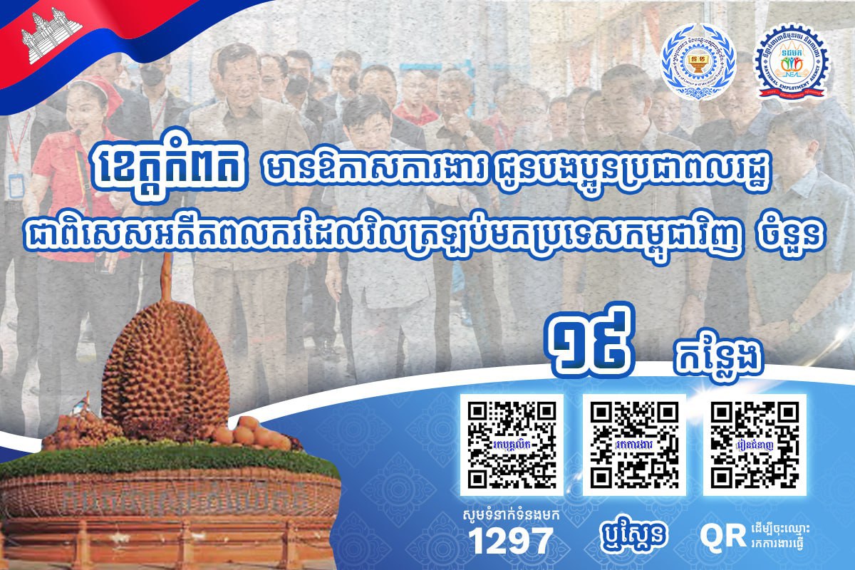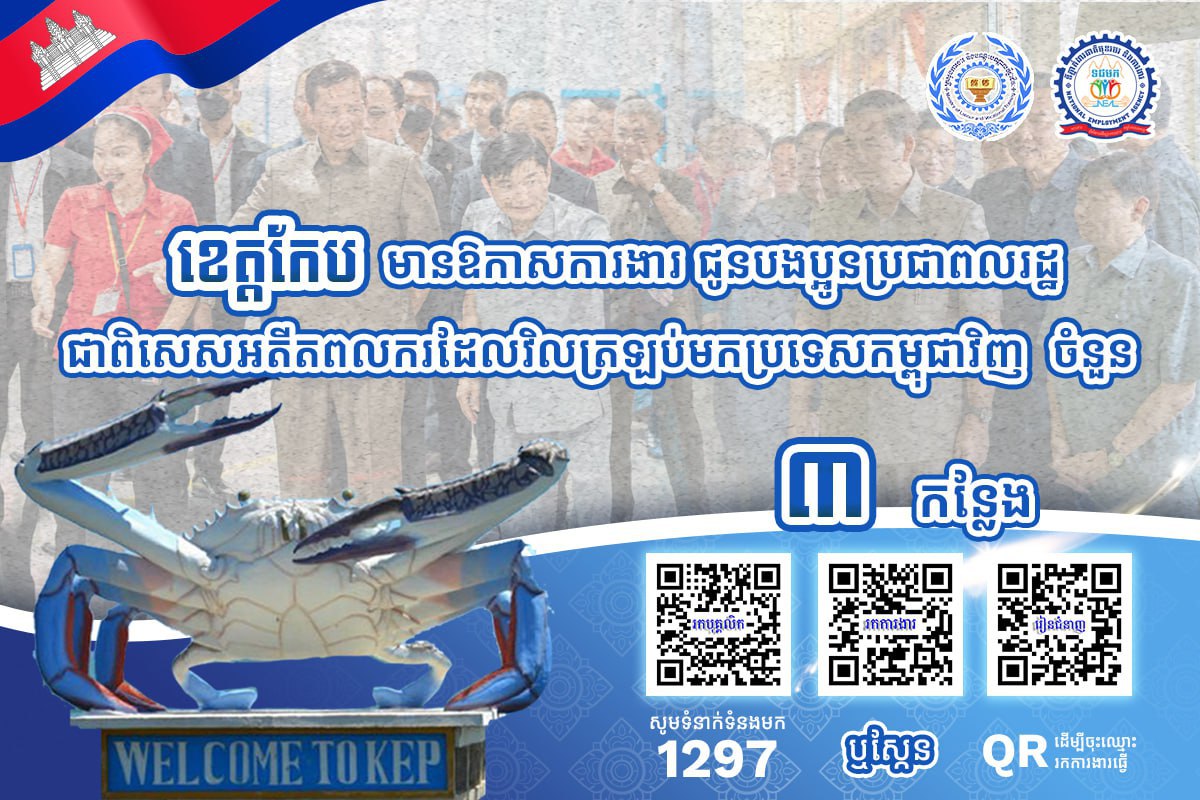 តាមរយៈការផ្សព្វផ្សាយ ក្រសួងការងារបានឱ្យដឹងថា គិតត្រឹមថ្ងៃទី២៧ ខែកុម្ភៈ ឆ្នាំ២០២៦នេះ ខេត្តស្ថិតនៅជាប់សមុទ្ររួមមាន៖ ខេត្តកោះកុង ព្រះសីហនុ កំពត និងខេត្តកែប មានឱកាសការងារសរុបចំនួន ៣,២៨១កន្លែង កំពុងរង់ចាំបងប្អូនអតីតពលករ ត្រឡប់មកពីប្រទេសថៃ និងអ្នកកំពុងស្វែងរកការងារធ្វើ។ ឱកាសការងារទាំងនោះ ស្ថិតក្នុងវិស័យឧស្សាហកម្ម និងវិស័យសេវាកម្ម ។