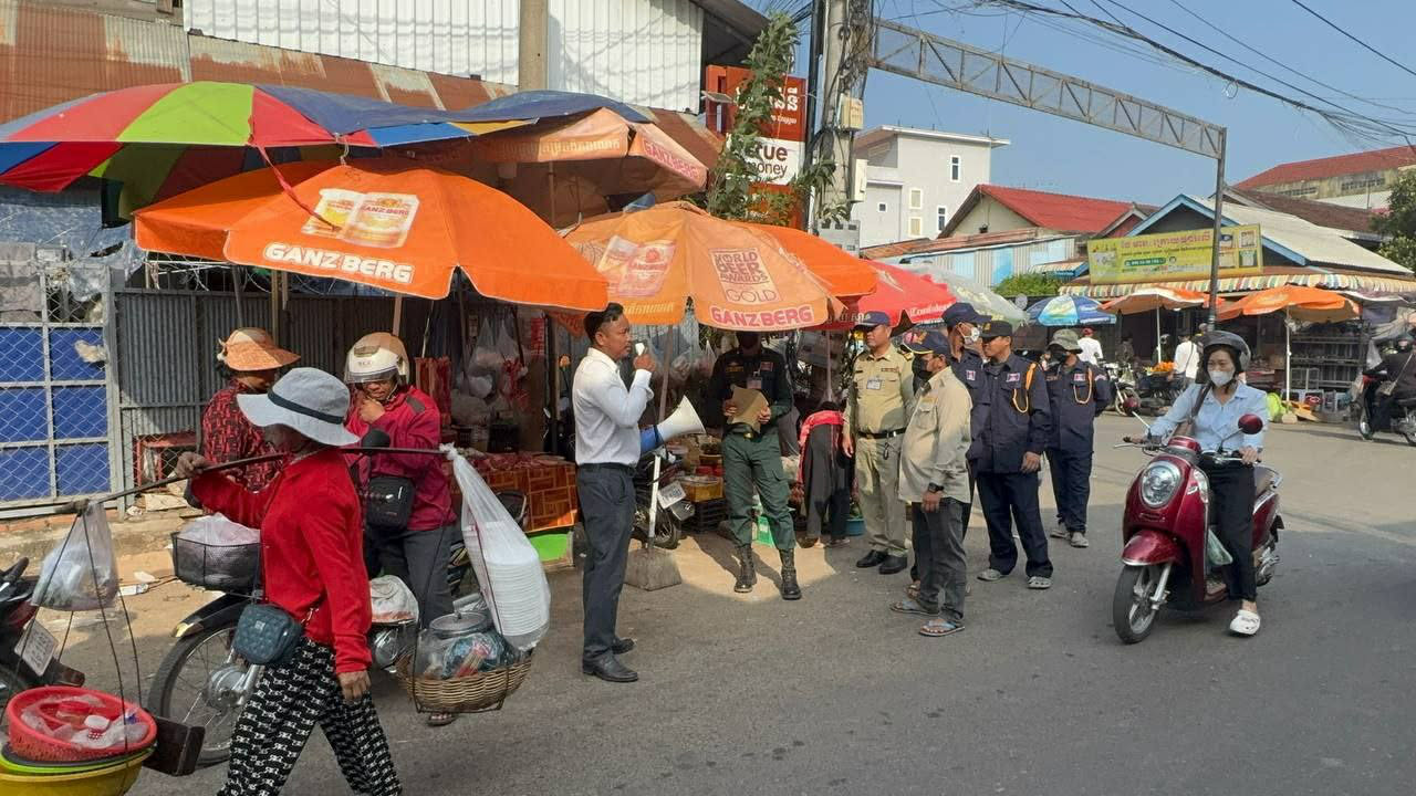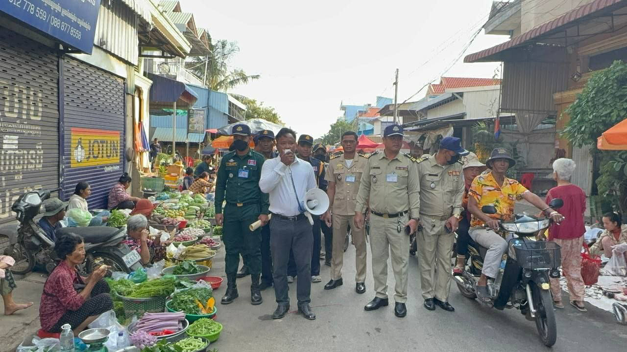 ខេត្តកំពង់ឆ្នាំង ៖ ដោយពិនិត្យឃើញថា អាជីវករលក់ដូរក្នុងផ្សារលើ ក្រុងកំពង់ឆ្នាំង បានយកដីចំណីផ្លូវលក់ដូរយ៉ាងអនាធិបតេយ្យ ធ្វើឱ្យបាត់បង់សណ្ដាប់ធ្នាប់ ស្ទះចរាចរណ៍ គ្មានរបៀបរៀបរយ បន្ថែមលើនេះ អាជីវករលក់ដូរក្នុងផ្សារដែលគោរពគោលការណ៍របស់ថ្នាក់ដឹកនាំ បែរជាលក់មិនដាច់ និងសំណូមពរដល់ទទូចឲ្យអាជ្ញាធររៀបចំសម្រាប់ធ្នាប់ឡើងវិញ ទើបនៅព្រឹកថ្ងៃទី៥ ខែមីនា ឆ្នាំ2026 នេះ គេឃើញលោក ម៉ក់ សុលីម អភិបាលរងក្រុងកំពង់ឆ្នាំង បានសហការជាមួយកងកម្លាំងនគរបាលនៃស្នងការដ្ឋាននគរបាលខេត្ត និង នគរបាលក្រុងចុះធ្វើការផ្សព្វផ្សាយ និងណែនាំដល់បងប្អូនប្រជាពលរដ្ឋអាជីវករ ដែលលក់ដូរជុំវិញផ្សារលើ និងនៅចំណុចផ្លូវបំបែកក្រោយផ្សារលើក្នុងភូមិត្រពាំងបី ត្រូវរុះរើចេញក្នុងរយៈពេល៧ថ្ងៃ បើមិនរុះរើចេញទេ ផុតកំណត់ សមត្ថកិច្ចនឹងចាត់វិធានការរដ្ឋបាល ប្រសិនបើមានការខូចខាតនោះមិនទទួលខុសត្រូវឡើយ ។